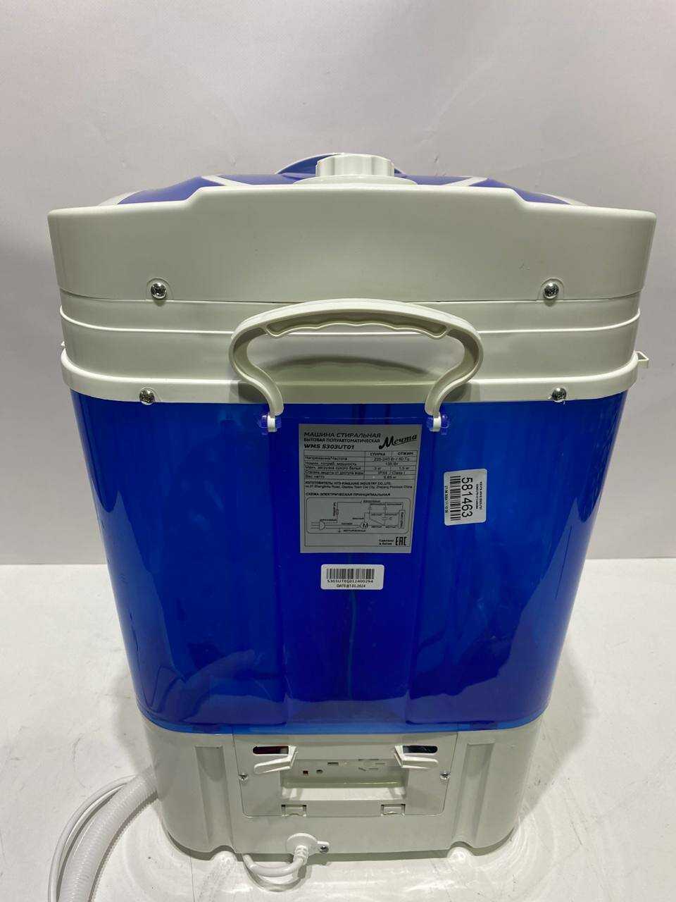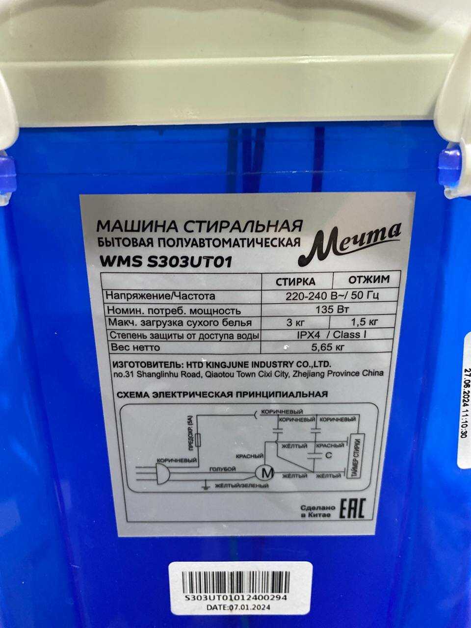 - - ВСЁ. Загрузка гораздо меньше заявленной. Встроенный нижний шланг треснул через две недели - перемотали скотчем, т.к. встроен - без него никак. Верхний ни о чем. он узкий, на кран не наденешь, диаметр не подходит. Корзина для отжима на пару трусов, но неважно, она сразу слетает и ничего не отожмешь. Цикл стирки на 10 минут - что вы будете стирать 10 минут? Трусы-носки? При этом в инструкции рекомендуют не больше 5 режимов подряд и дальше полчаса перерыва, а то мотор может перегреться. А как-то еще и прополоскать надо.