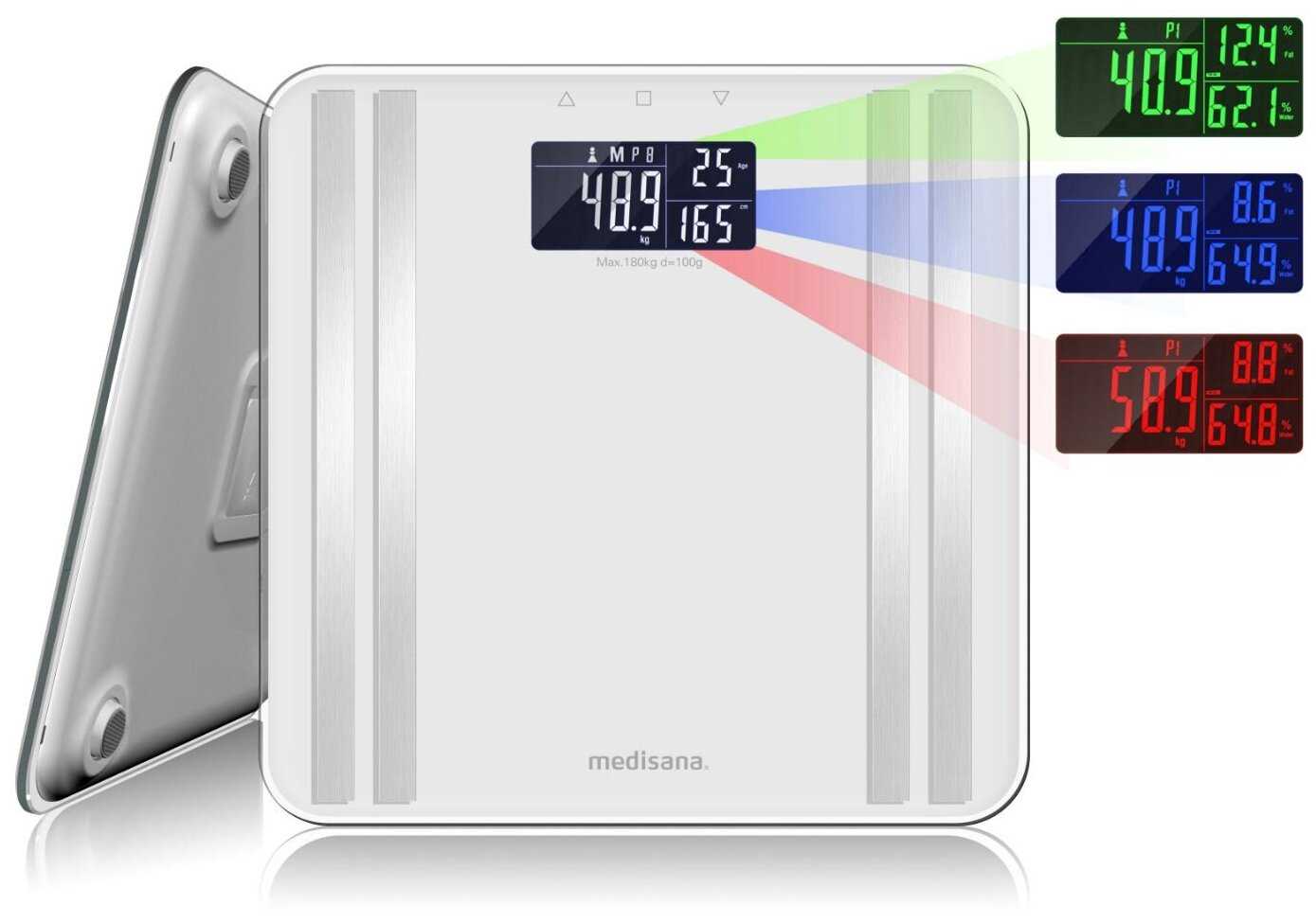 - + Сохраняют данные 9 человек и распознают запрограммированных; измеряют вес, показывают измеренные значения жира, воды, вес костей и мышечную массу, рекомендуют расход калорий. Цветовое отражение отклонений от целевого веса.
