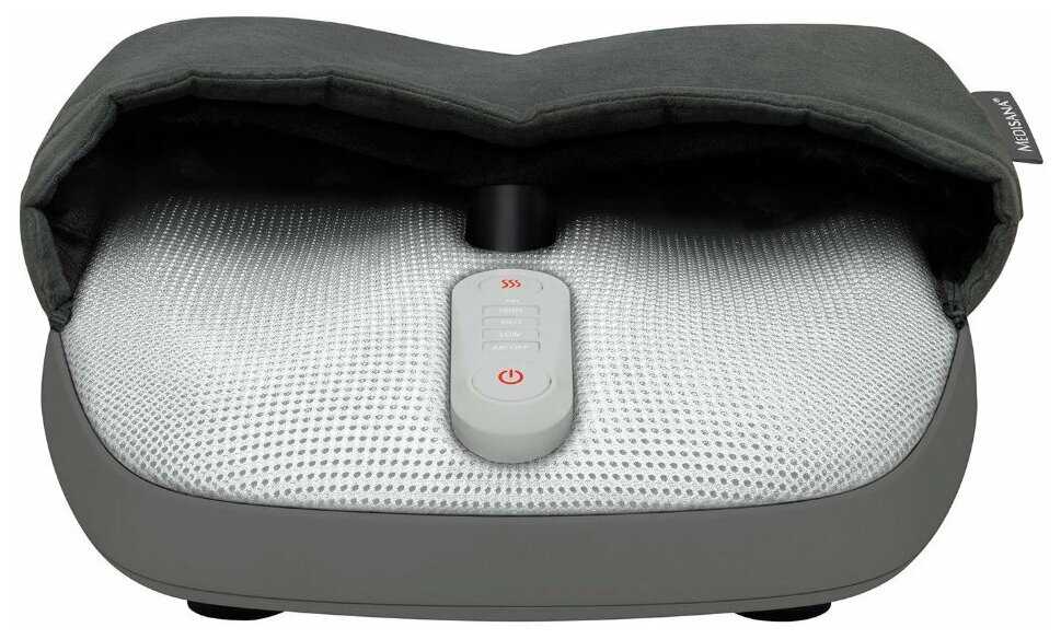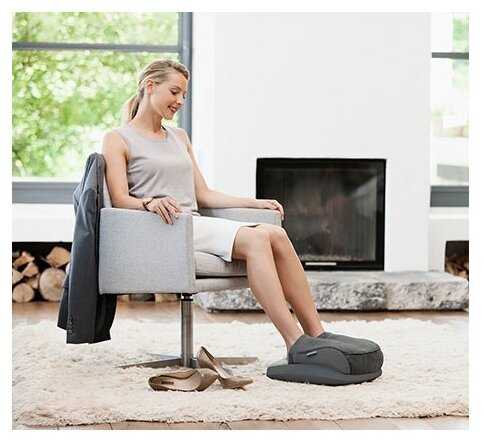 Ничего выдающегося в нем нет. Просто 2 тапка спаяны вместе, внутри тапков ролики, похожие, по ощущениям, на колеса от детской машинки. Ролики ползают, особо не стараясь. Приходится прижимать к ним ноги. Нагрев вообще не стоит внимания, его почти нет. Причем, кнопкой его не сделать сильнее, режим один. Сверху подушки почти не прижимают. Ну, или очень полную ступню надо.