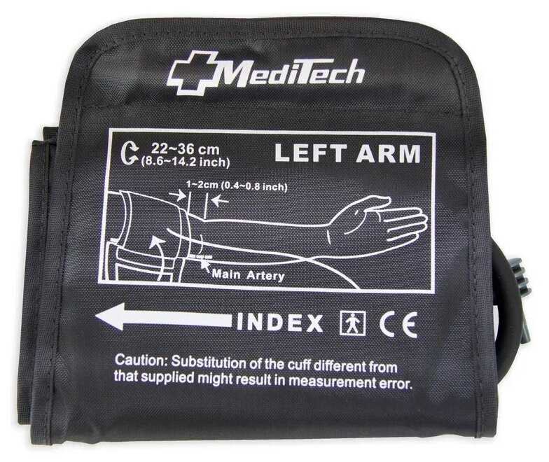 - Манжета стандартного размера (до 360 мм) подходит для большинства рук, легко надевается.