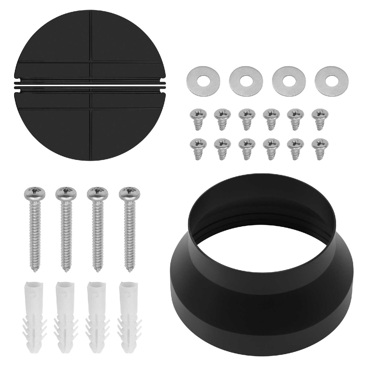 Комплектация: Базовая поставка включает крепеж для стандартного монтажа, но угольные фильтры и переходные элементы приобретаются отдельно.