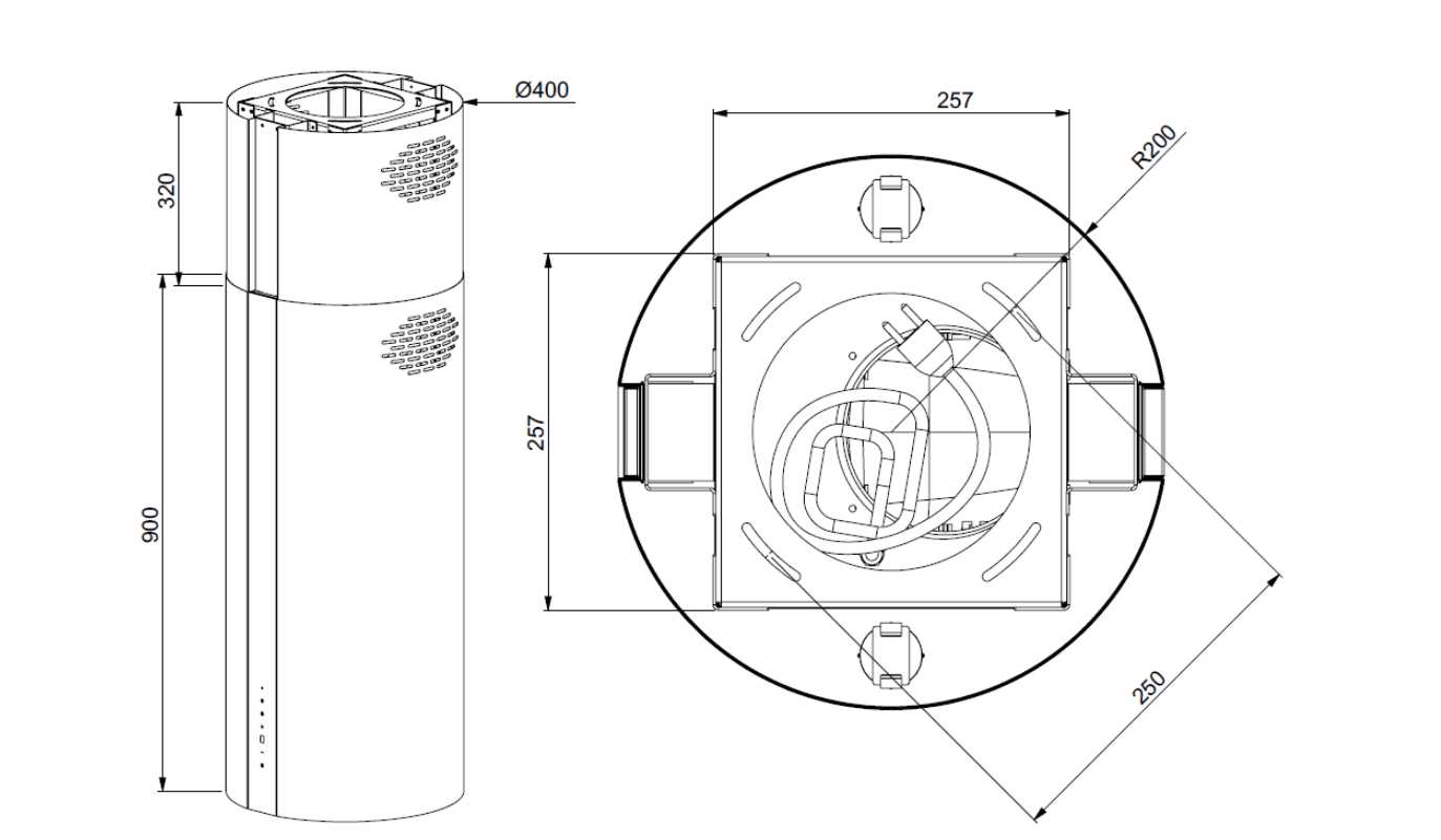 Вытяжка оптимальна для совмещённых пространств до 30–35 м² благодаря мощному всасыванию, предотвращающему распространение запахов в жилые зоны. Компактные размеры не перегружают интерьер, а цилиндрическая форма визуально зонирует кухню. Отзывы подтверждают, что она справляется с нагрузкой при одновременной готовке нескольких блюд. -