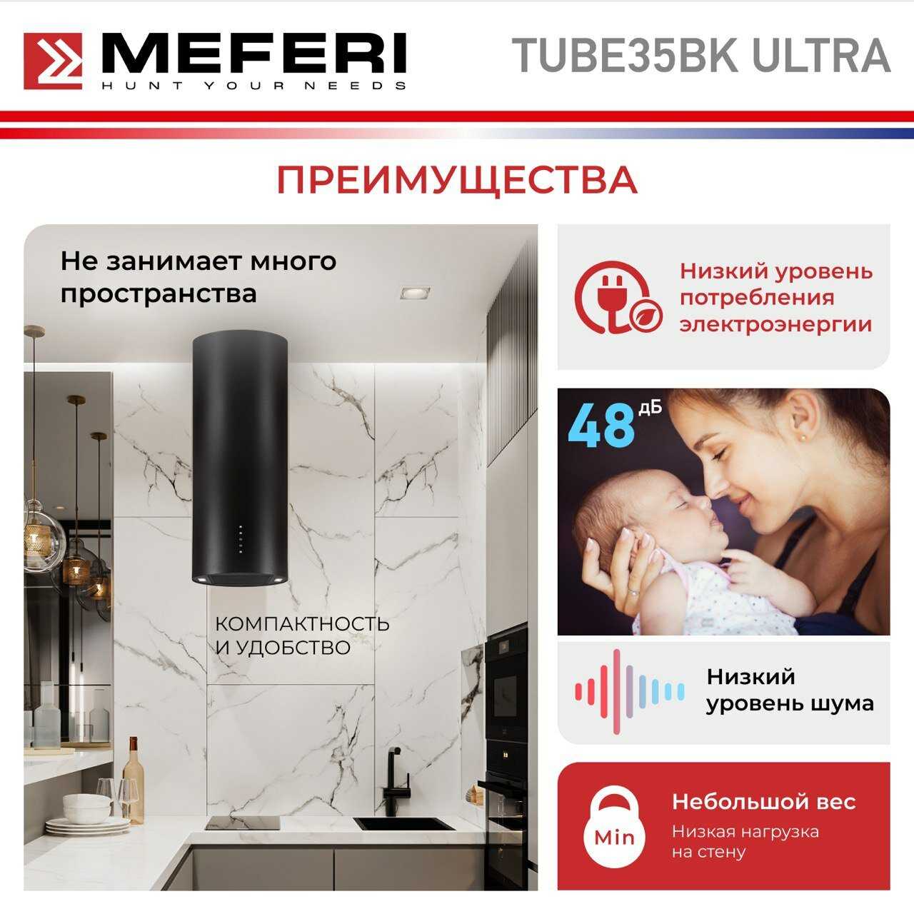 Отзывы о Вытяжка MEFERI TUBE40BK POWER