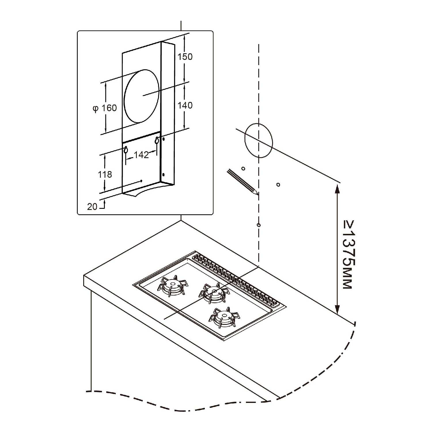 Брал в первую очередь ради дизайна, в интерьер вписалась как надо. Монтаж несложный, повесил сам. Нормальная вытяжка для дома.