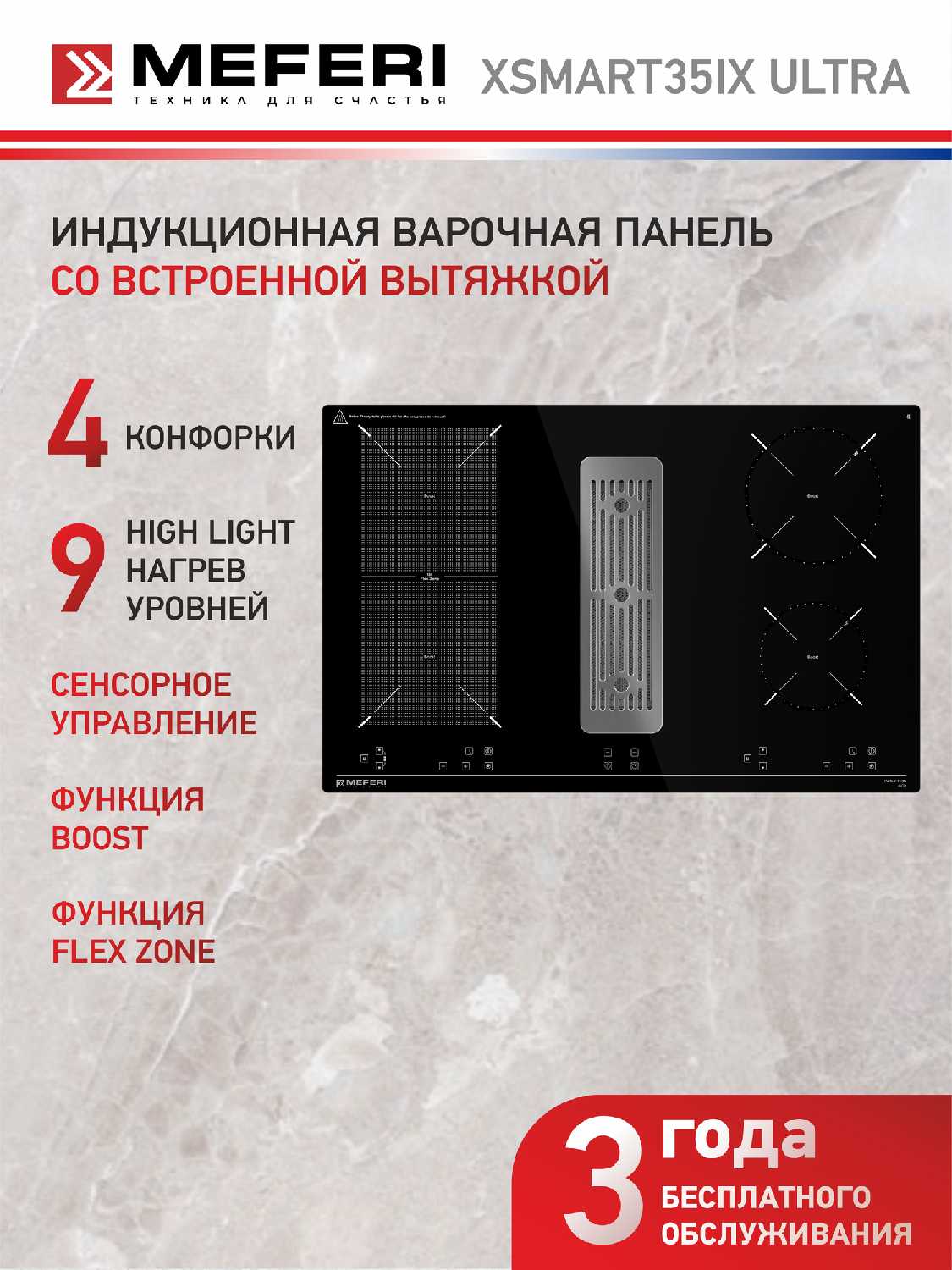 Отзывы о Индукционная варочная панель с вытяжкой MEFERI XSMART35IX ULTRA