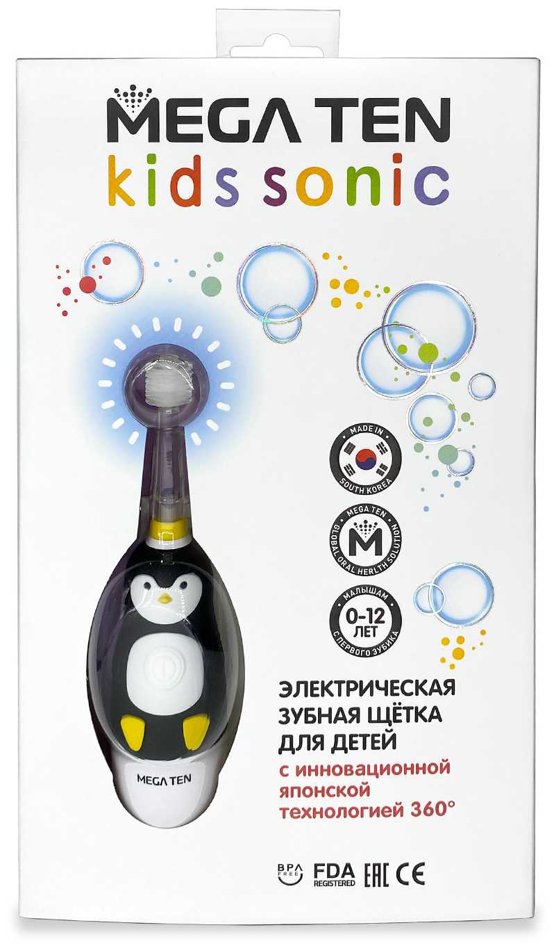Отзывы о Электрическая зубная щетка MEGA Ten Kids Sonic Пингвиненок в наборе