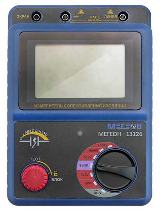 | Дополнительная информация : | измерение сопротивление изоляции при испытательном напряжении 100В: 0 - 1999 МОм, 250В: 0 - 499 МОм, 500В: 0 - 999 МОм, 1000В: 0 - 199 ГОм, 2500В: 0 - 499 ГОм (диапазон установки испытательного напряжения от U до 12U) |