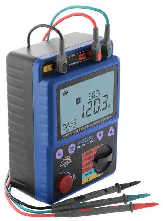 | Дополнительная информация : | измерение сопротивления изоляции при тестовом напряжении 250В: 10 - 499 МОм, 500В: 0 - 999 МОм, 1000В: 0 - 1.99 ГОм, 2500В: 0 - 999 ГОм (диапазон установки испытательного напряжения от U до 1.2 U) |