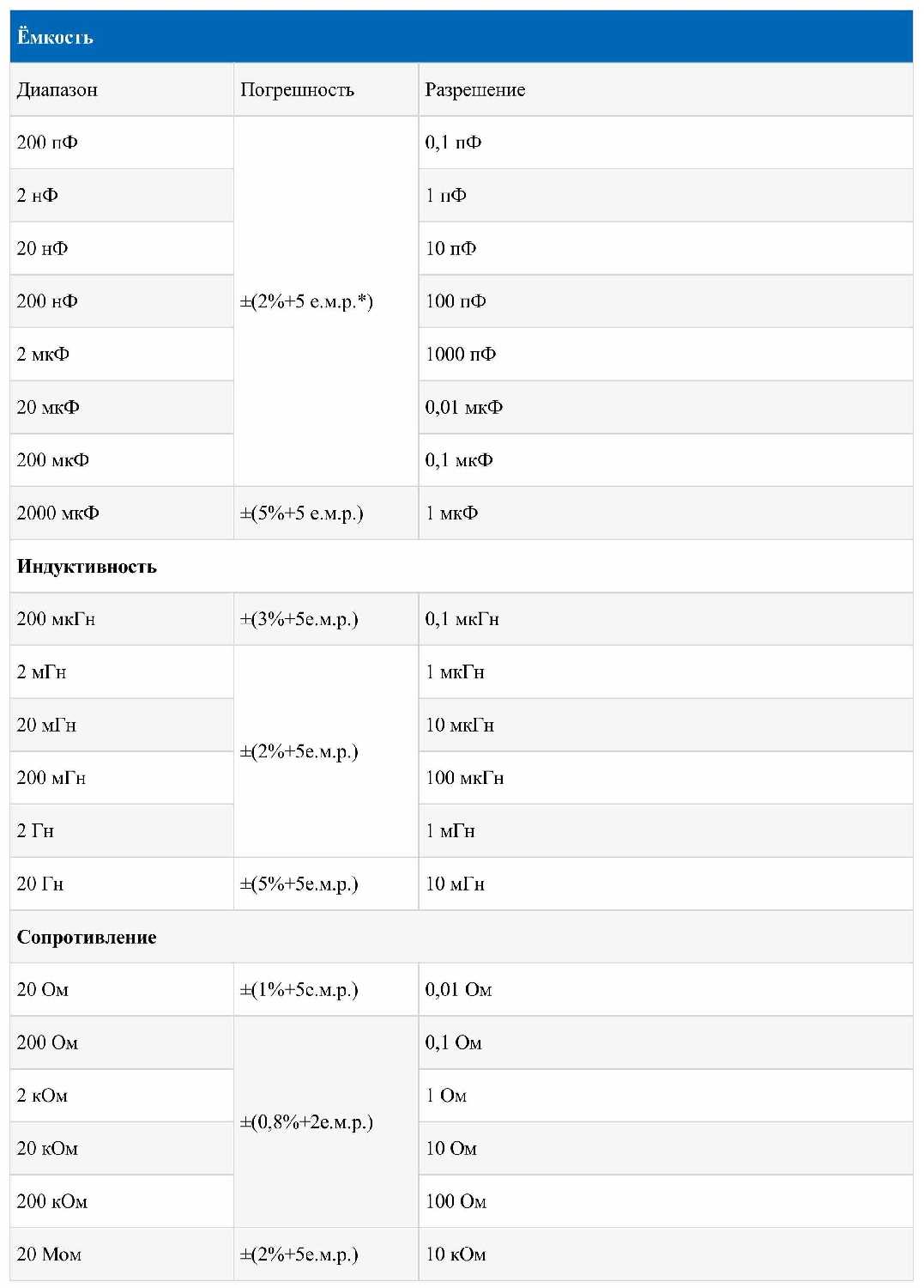 | Дополнительная информация : | измерение индуктивности 0, 1 мкГн ~ 20 Гн |