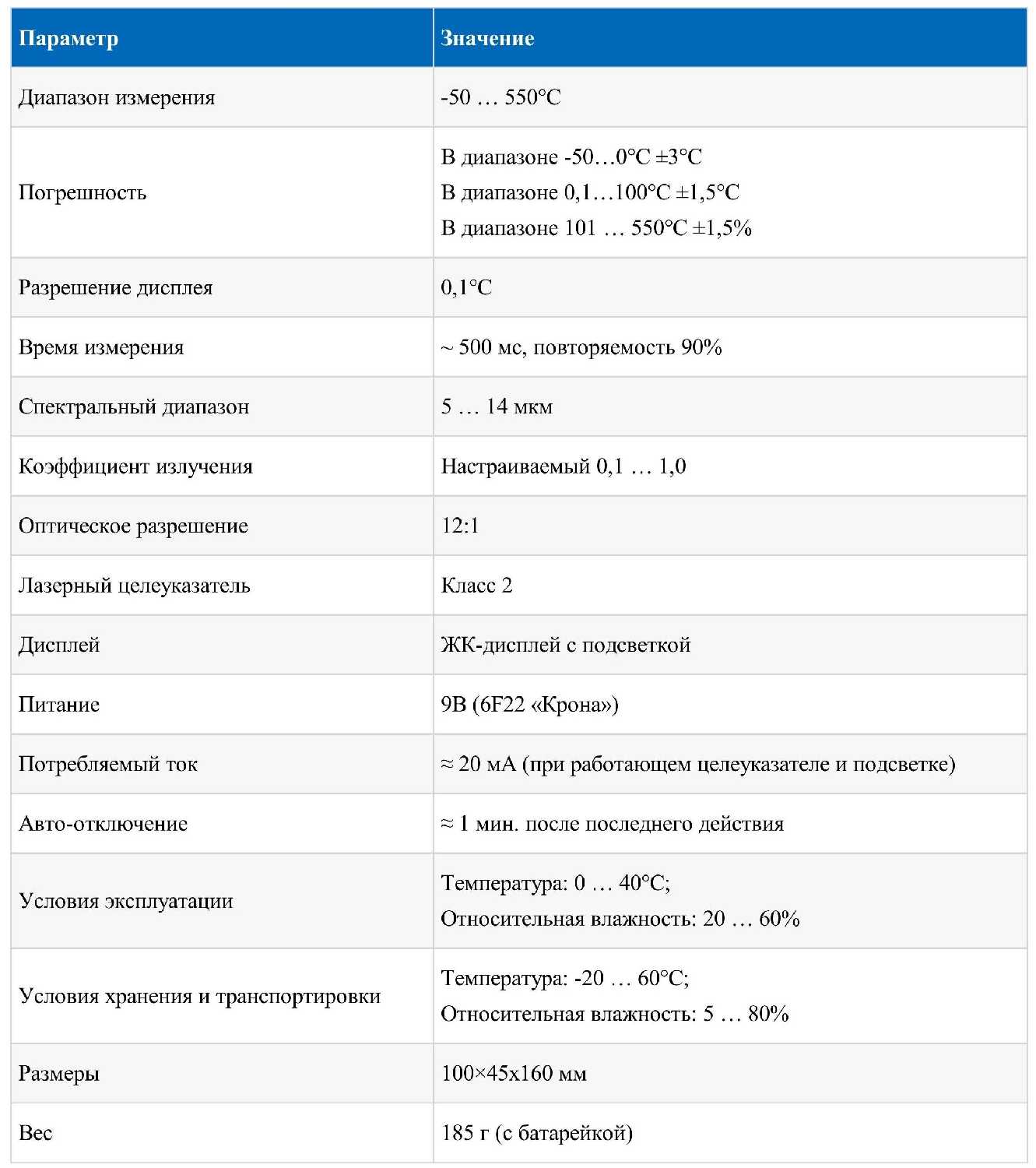 Характеристи МЕГЕОН Бесконтактный термометр (пирометр) мегеон 16550