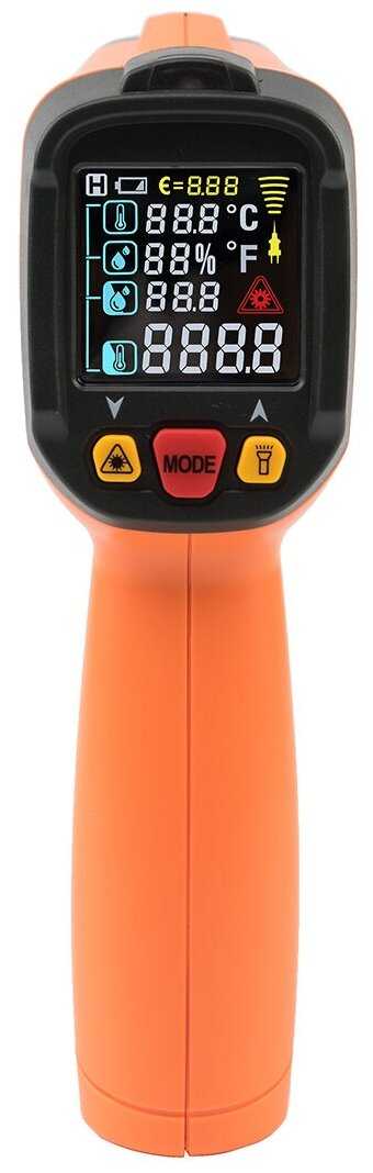 - + Измеряет температуру поверхностей, окружающего воздуха и уровень влажности. В комплекте термопара и чехол.