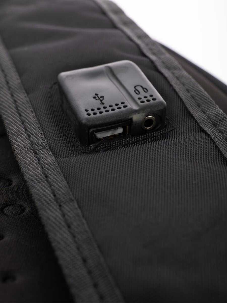 - Разъём USB для зарядки и джек для наушников на лямке удобны для подключения гаджетов в пути.