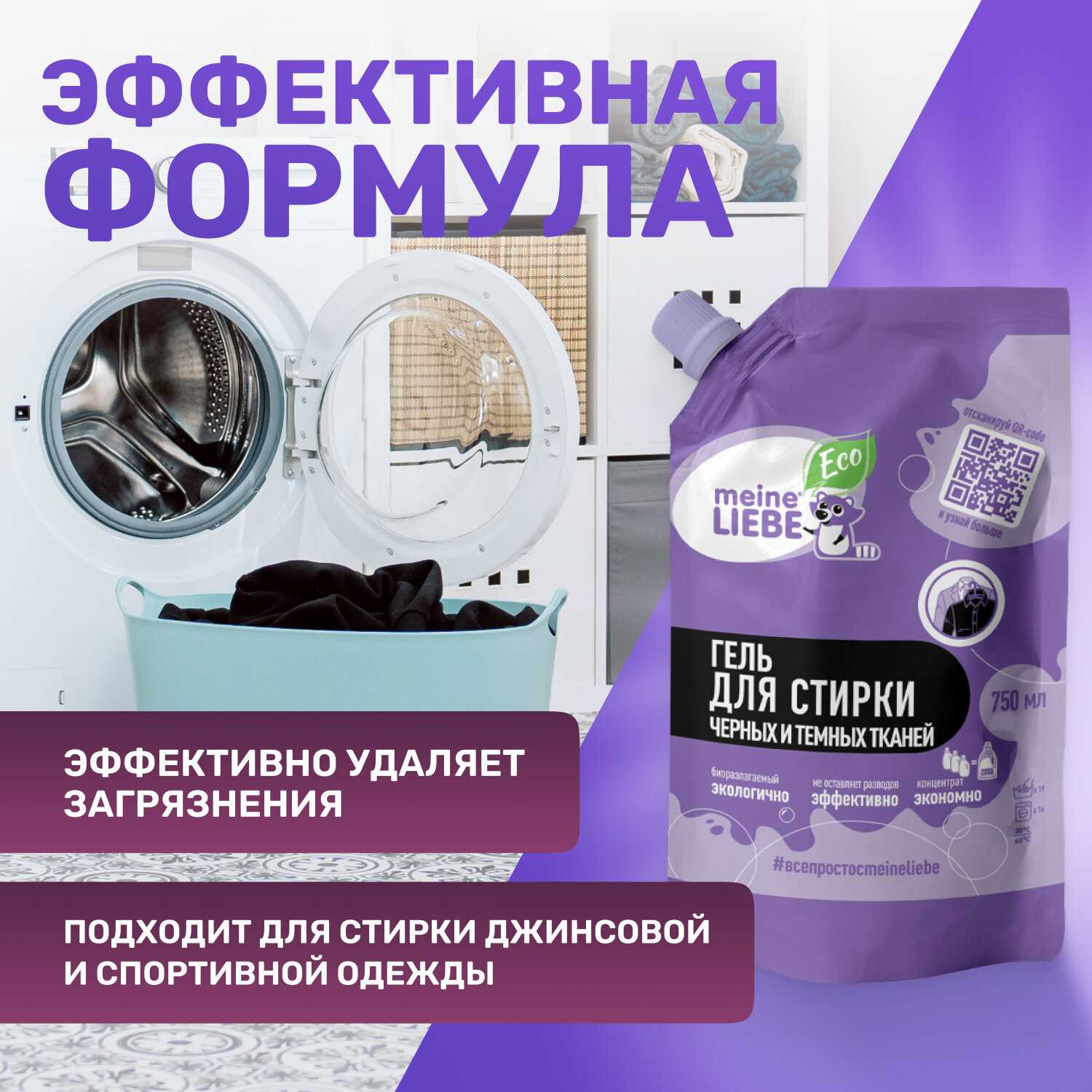 - Эффективное сохранение цвета темных тканей без вымывания пигмента: