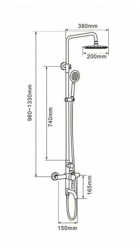 | Дополнительная информация : | высота стойки для душа: 1330 мм, диаметр верхнего душа: 200 мм |