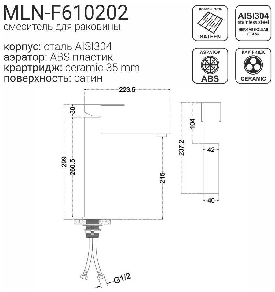 - материал корпуса: нержавеющая сталь