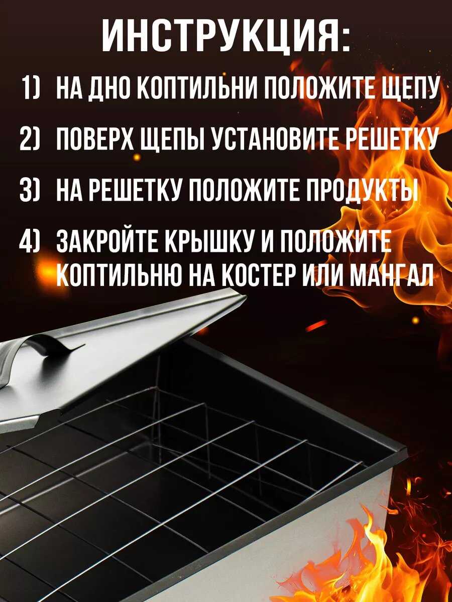 | Дополнительная информация : | Она поможет наслаждаться вкусом копченых продуктов, приготовленных самостоятельно и станет незаменимым помощником в приготовлении вкусных и ароматных деликатесов. |