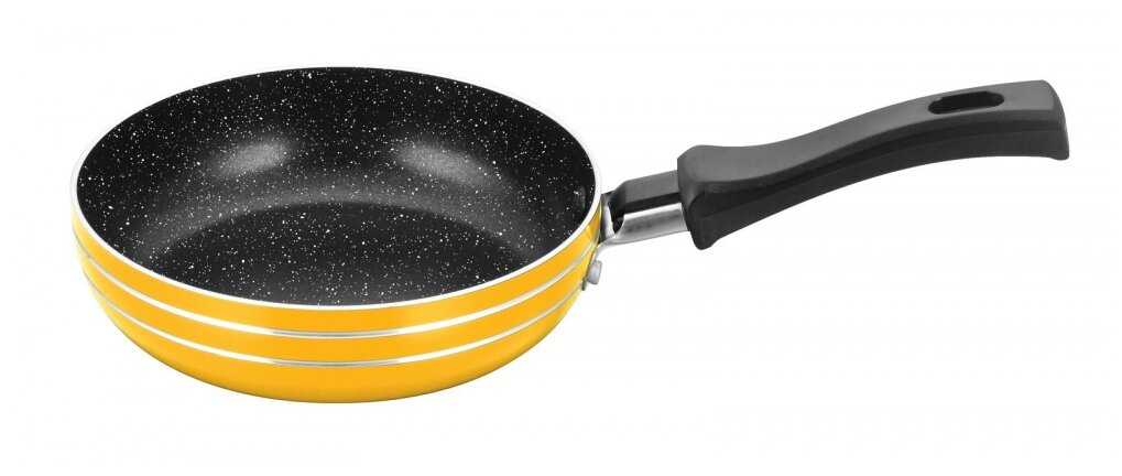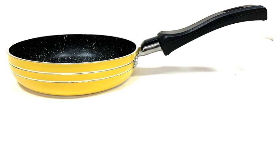 - + Искала именно такой размер. Оптимально быстро разгореть или приготовить еду для одного. Притом осталась крышка от предыдущей сковороды такого же размера - идеально подошла.