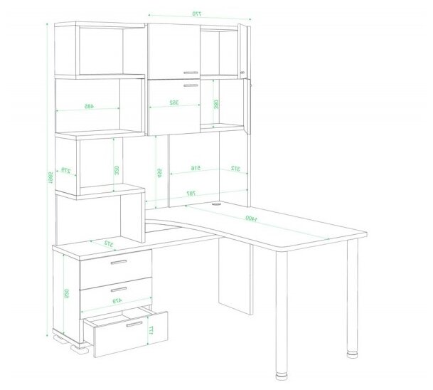 | Особенности : | надстройка, с тумбой, с ящиком для хранения, угловой |