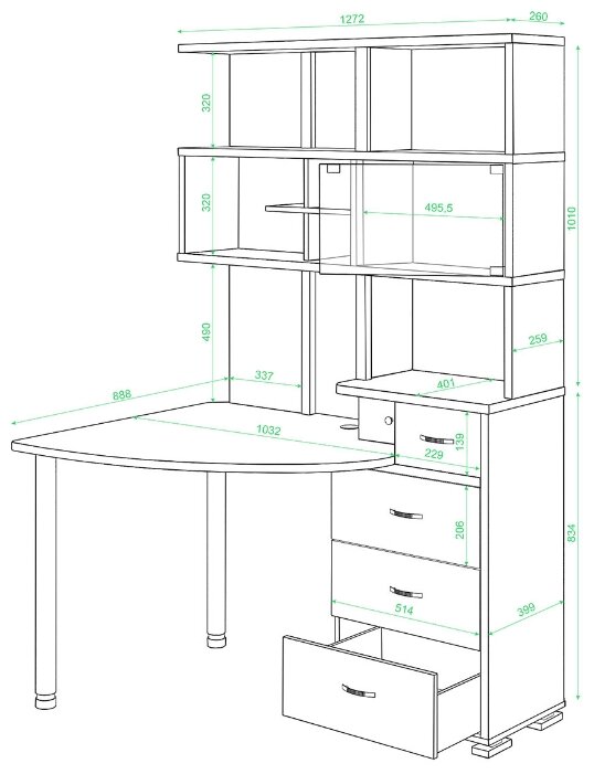 | Особенности : | надстройка, с тумбой, с ящиком для хранения, угловой |
