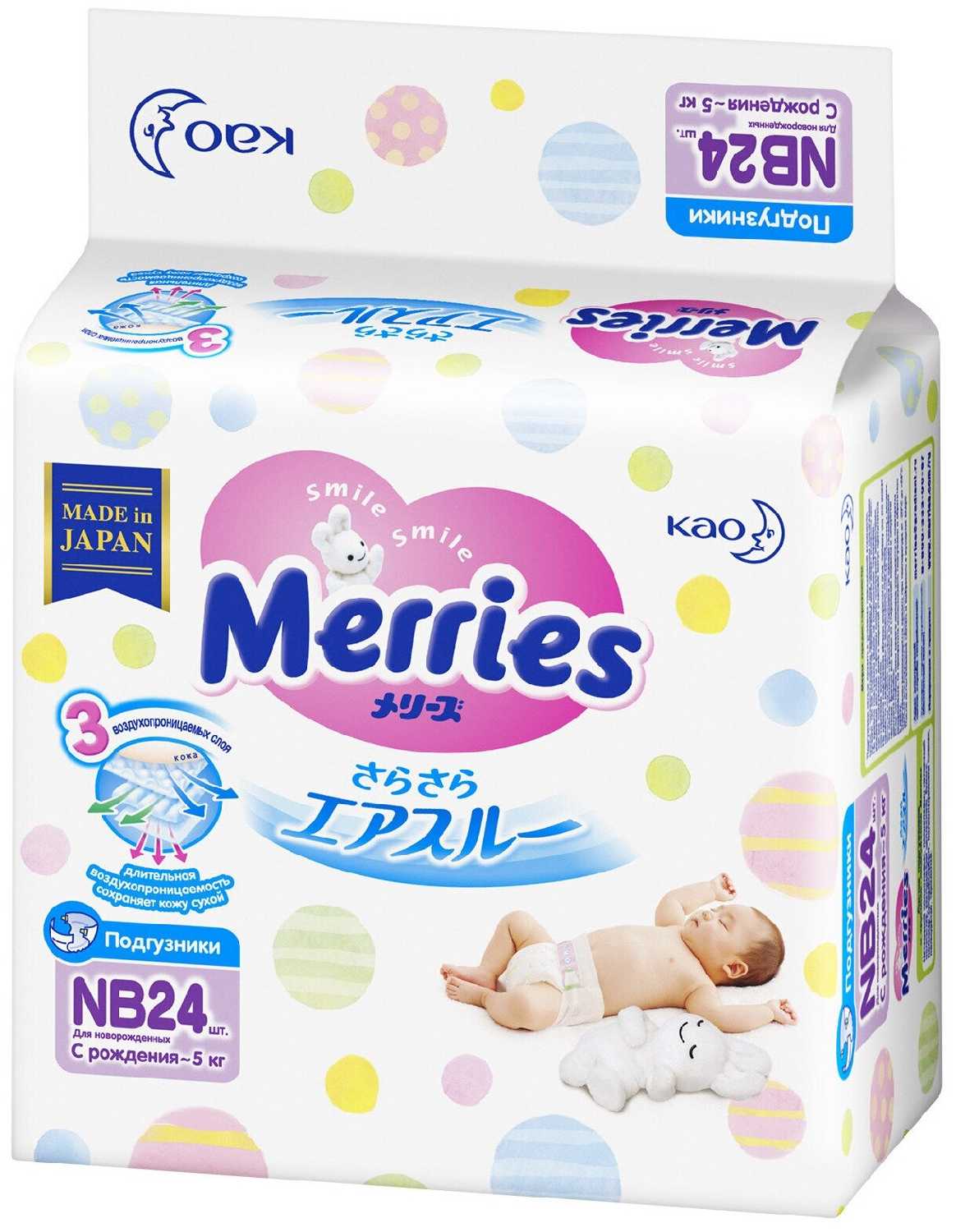 В целом, для новорожденного лучше памперсов наверно нет. В свое время перепробовали много аналогов, только от мерриса никогда не было проблем с кожей под пасперсами! Не протекают, хорошо впитывают! Что еще нужно?