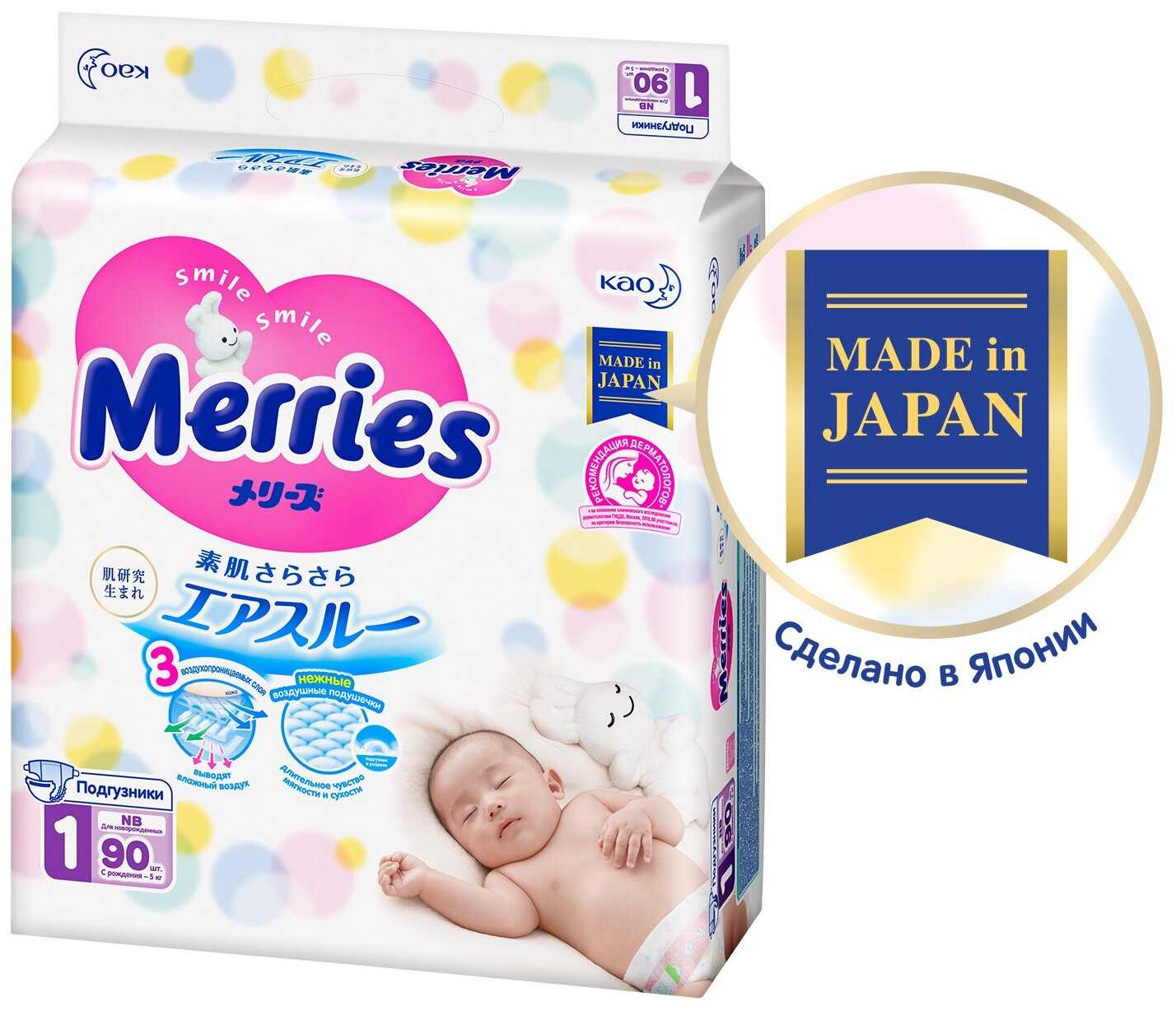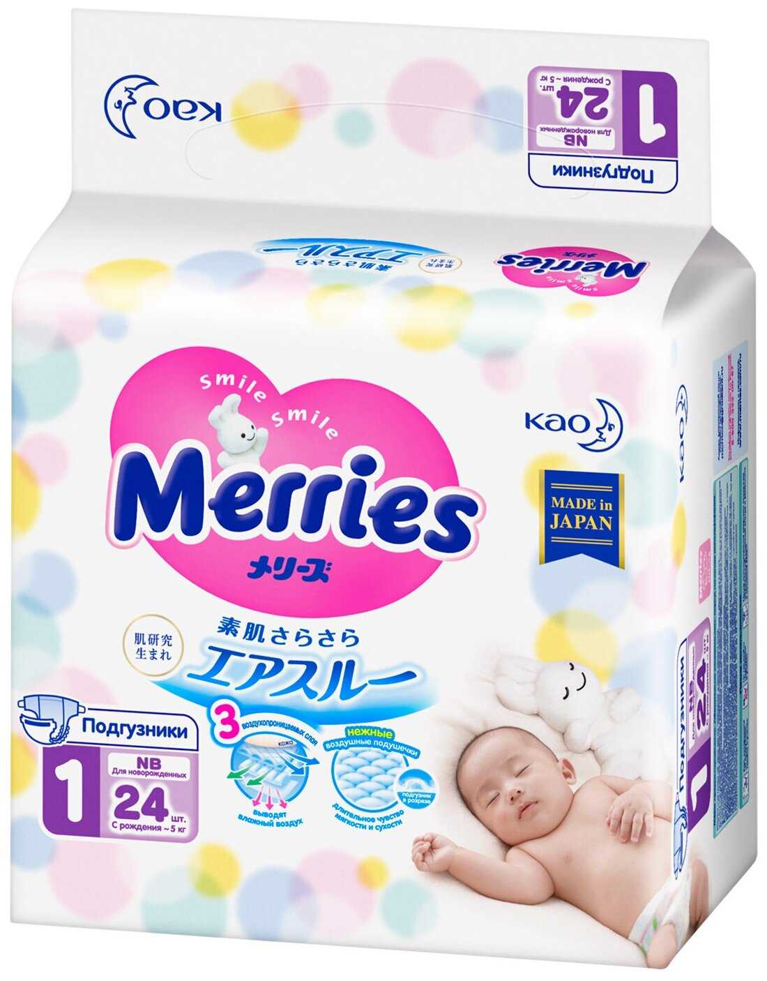 В целом, для новорожденного лучше памперсов наверно нет. В свое время перепробовали много аналогов, только от мерриса никогда не было проблем с кожей под пасперсами! Не протекают, хорошо впитывают! Что еще нужно?