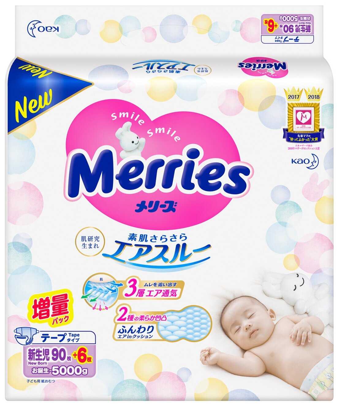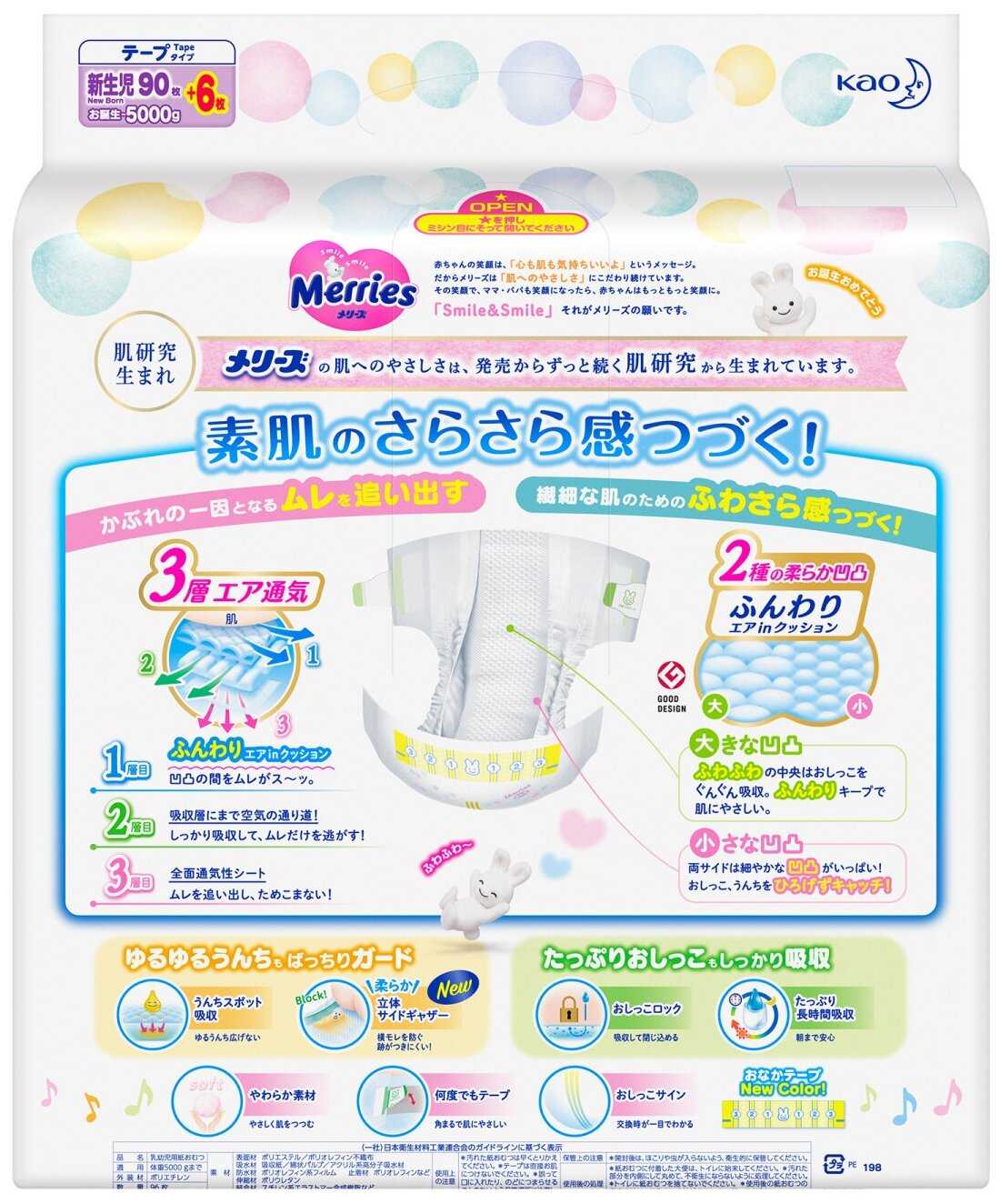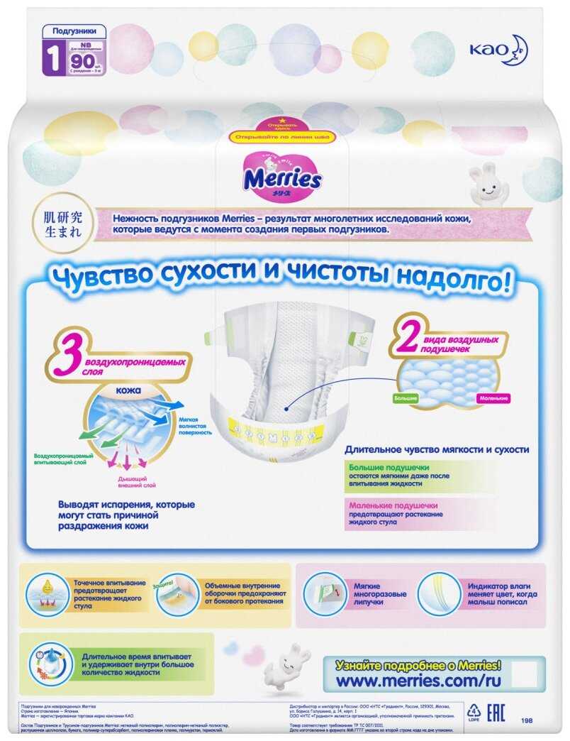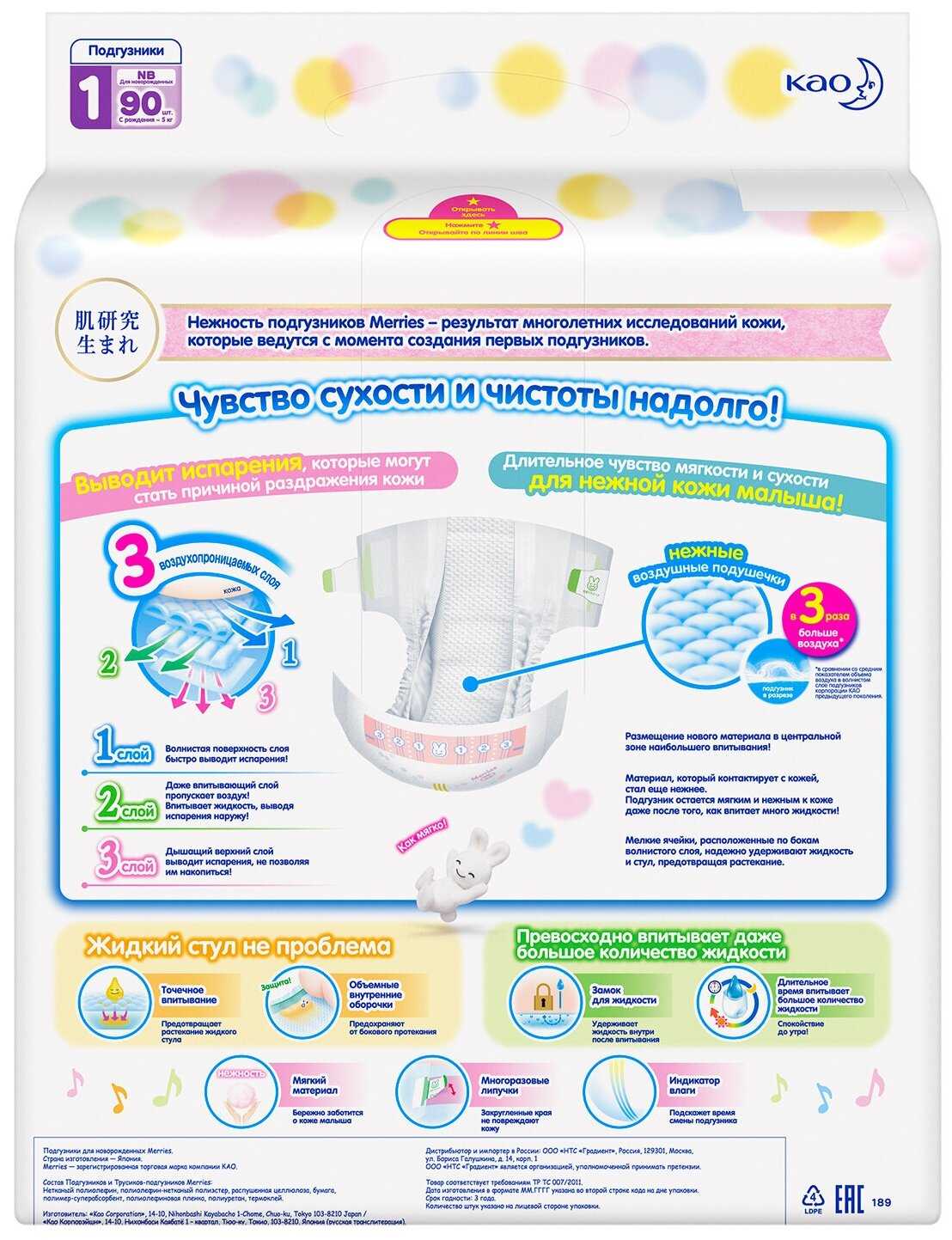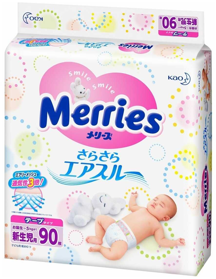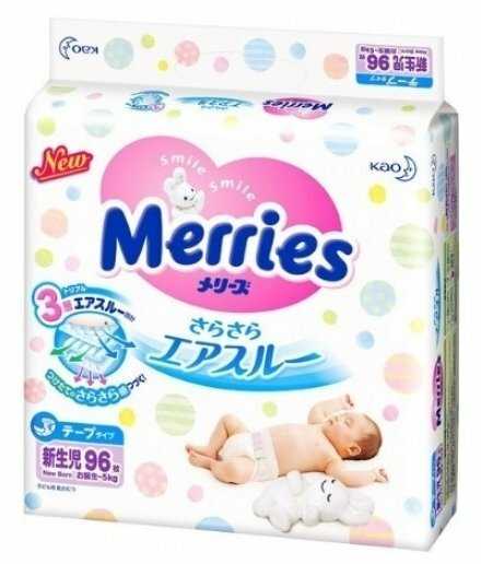 - + MERRIES Подгузники для новорождённых на липучках до 5 кг (размер NB / 1)