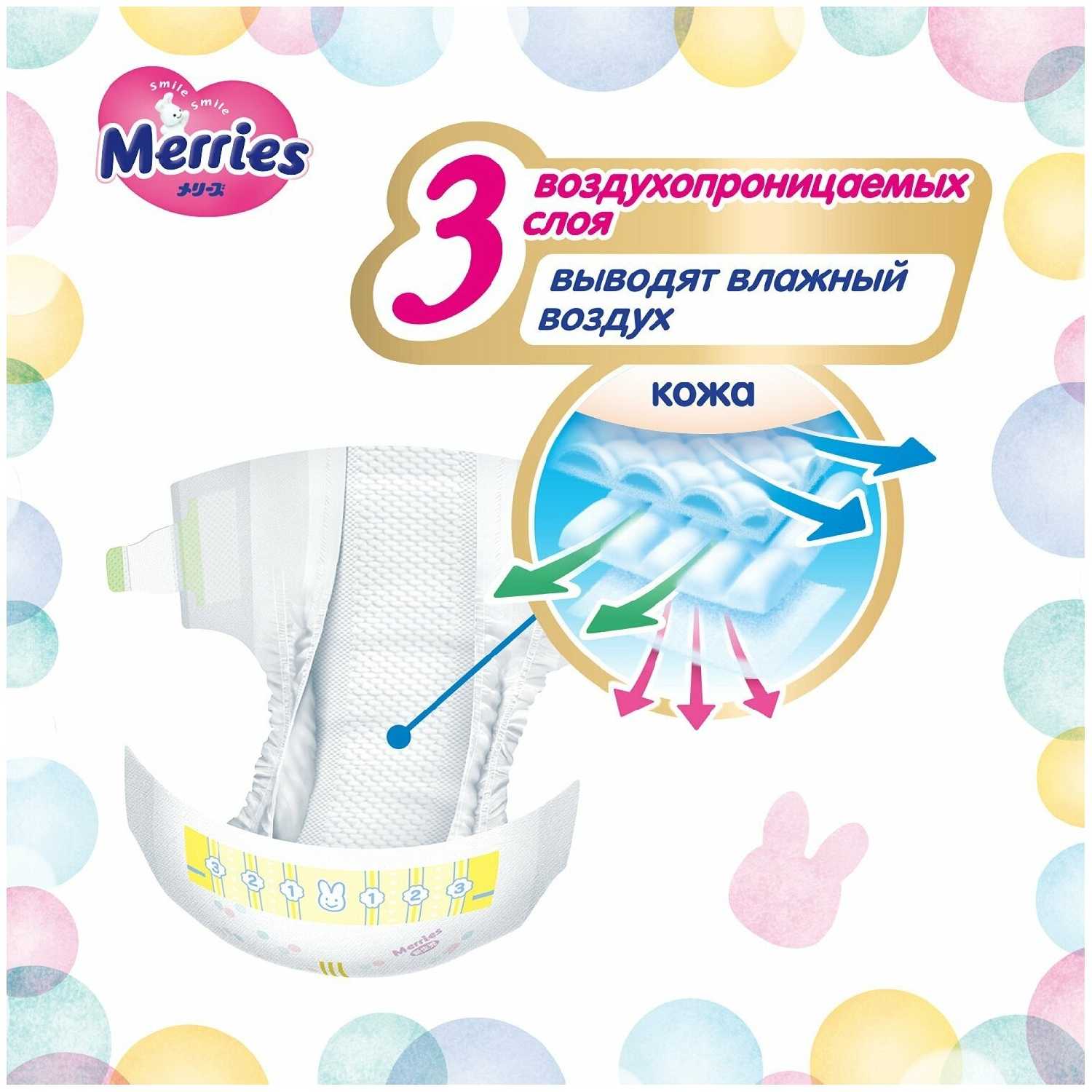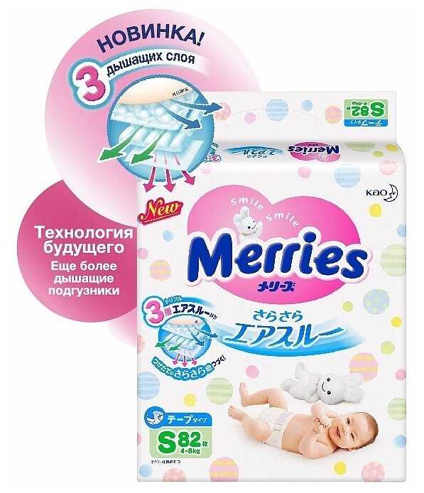 Характеристи Merries подгузники S (4-8 кг)