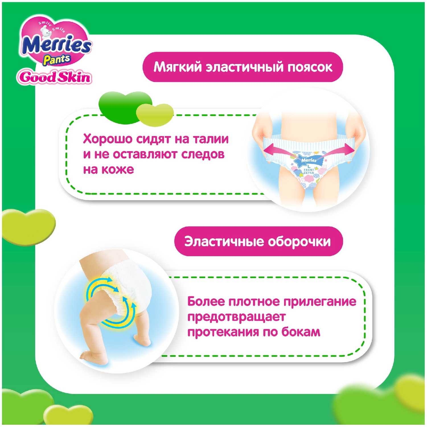 Плюсы по отзывам пользователей - Почему стоит купить Merries подгузники-трусики Good Skin XL, 12-19 кг?: