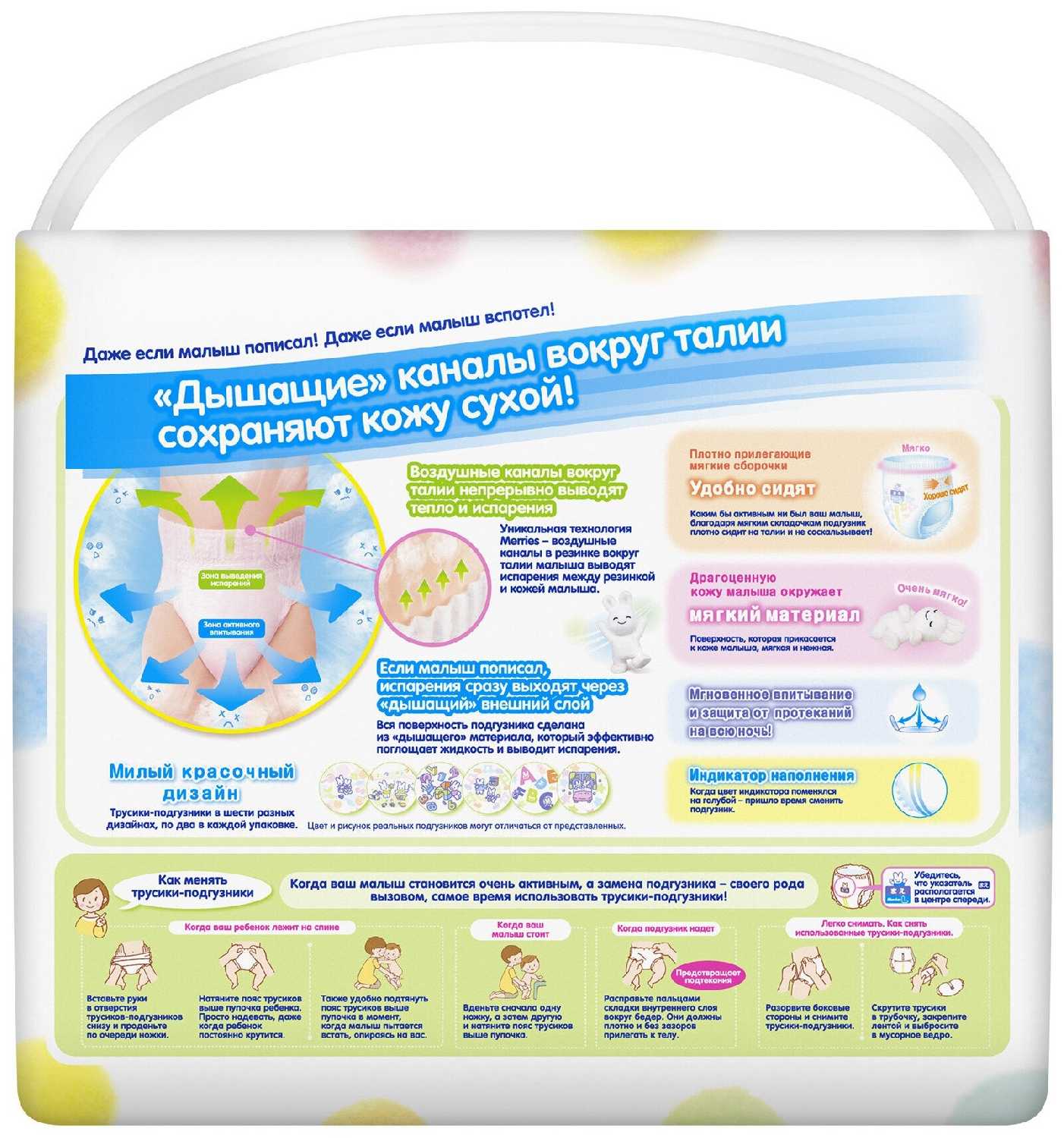 - + Трусики использовать удобнее, чем подгузники, когда ребёнок уже начинает ползать. Качество Меррис достойное. На вес 7 кг беру L, нам подходит. Ночью можно не беспокоиться.