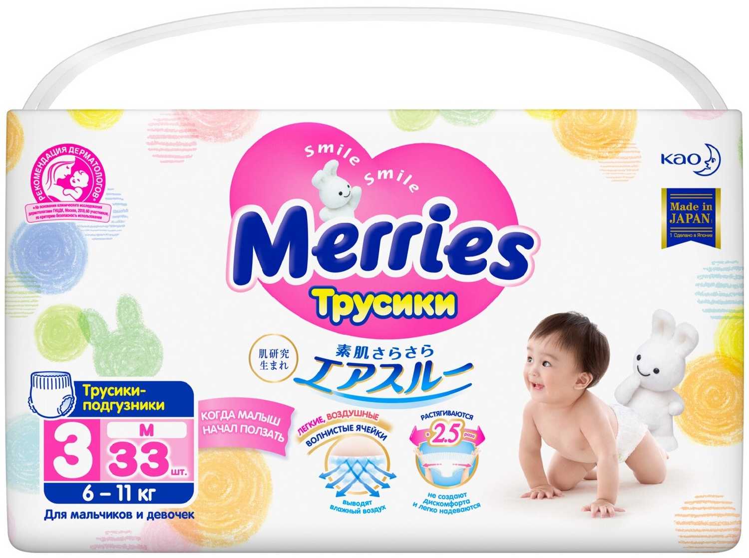 Самые мягкие трусики, которыми мы пользовались) Очень понравились, даже не ожидала, что могут быть такими приятными на ощупь. Плюс долго удерживают жидкость и не протекают, у малыша почти не остаётся следов на коже от резиночек. Также они намного удобнее и шире, чем хаггисы которые мы всегда брали. Буду брать теперь только меррис. 👍 Нам почти 7 кг, размер М отлично подошел