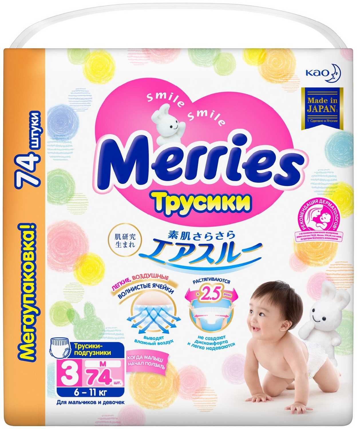 142 отзывов пользователей o Merries трусики M (6-11 кг)