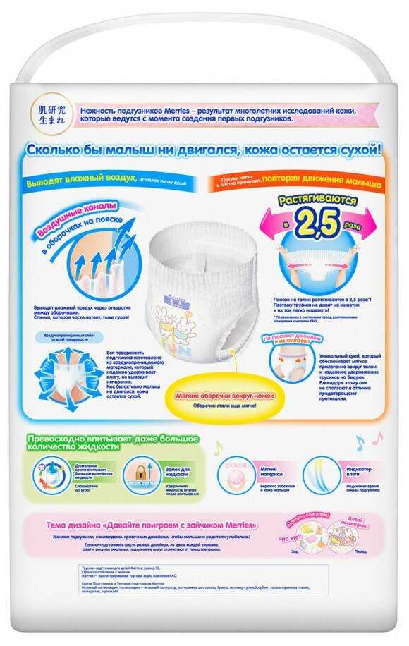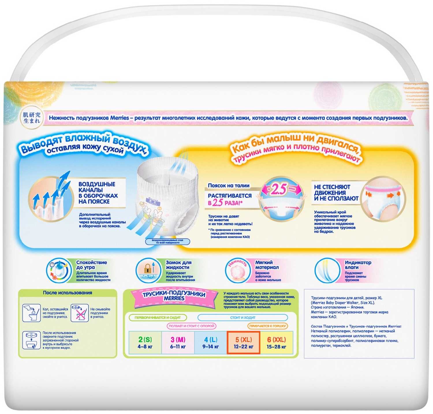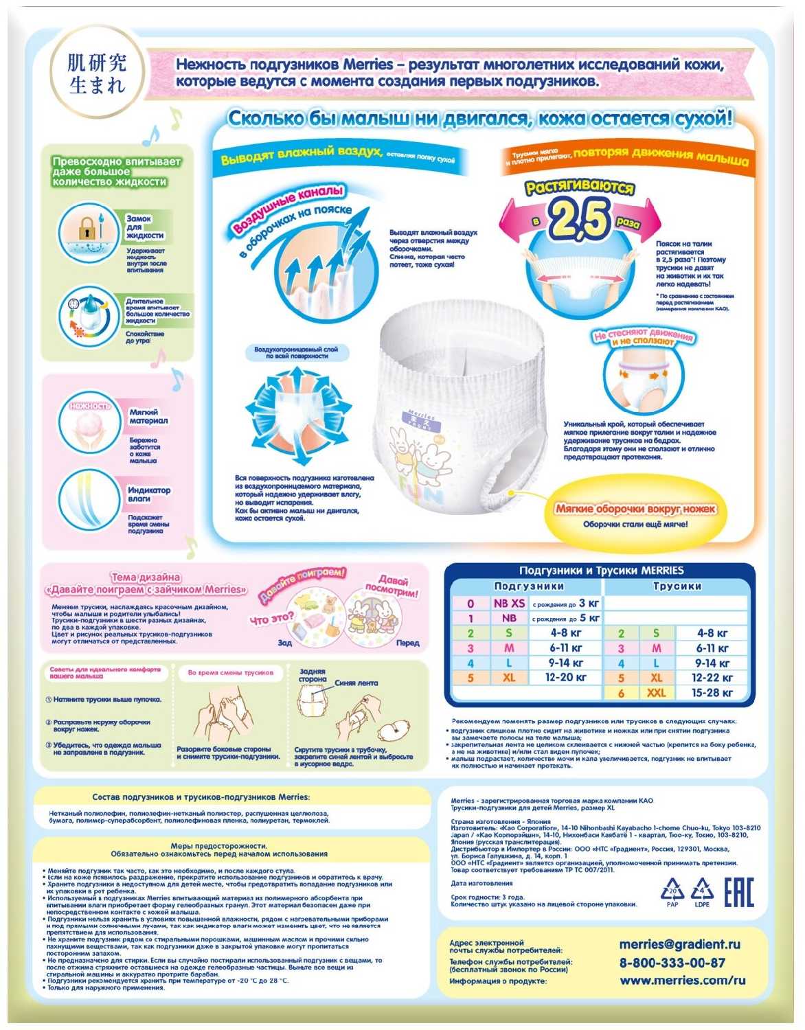 Обзор Merries трусики XL, 12-22 кг - мнение пользователей*: