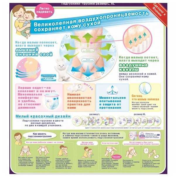 - Трусики требуют навыка при надевании на активных детей: ножки нужно продевать одновременно, что неудобно в дороге.