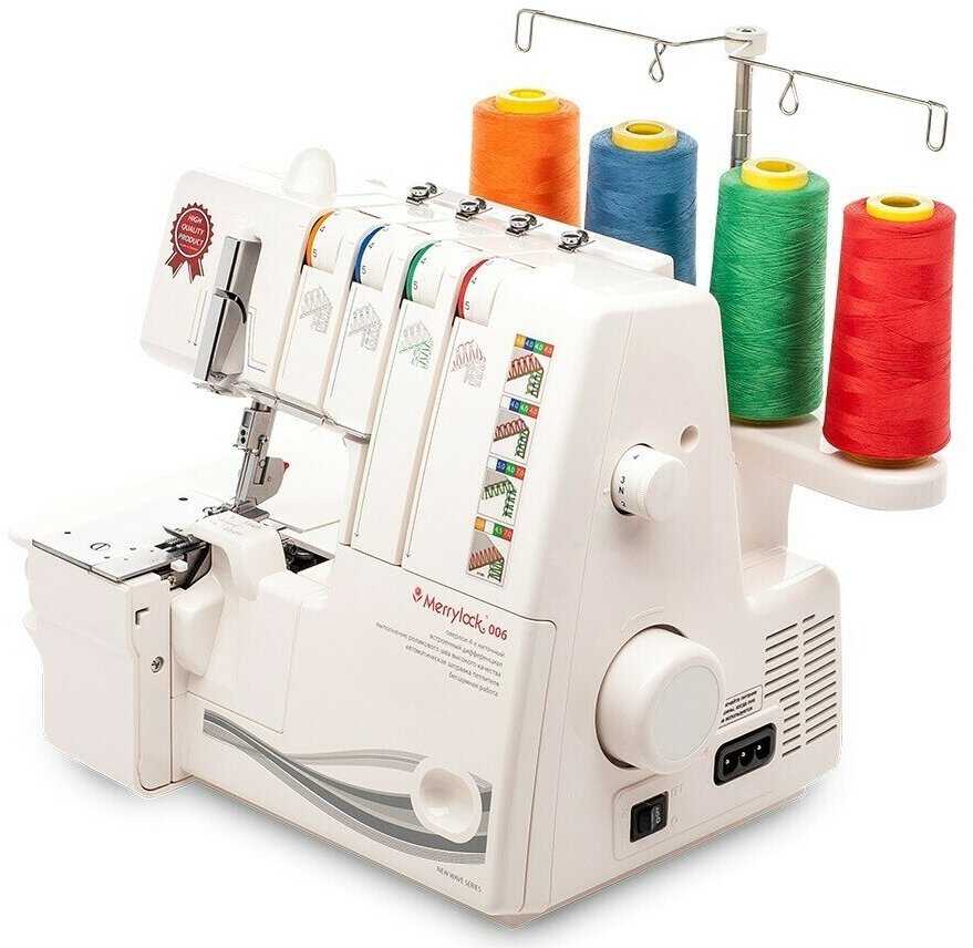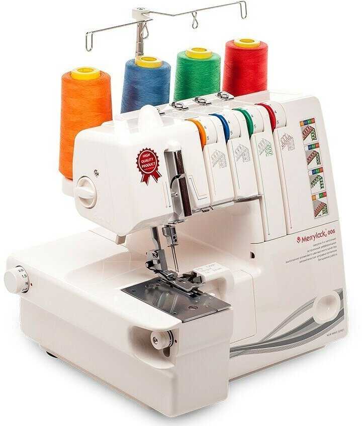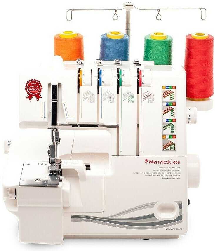 - + Не шумный. Простая заправка всех нитей. Выручает цветная маркировка. Всё в комплекте аккуратно упаковано. Плавный ход.