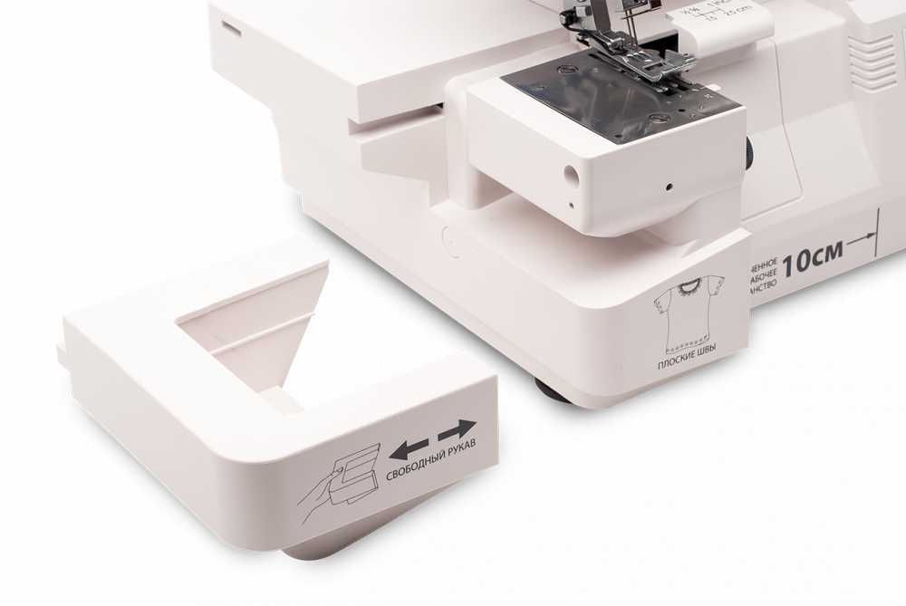 - Функция "свободный рукав" (съемная рукавная платформа) облегчает обработку узких деталей (манжеты, штанины).