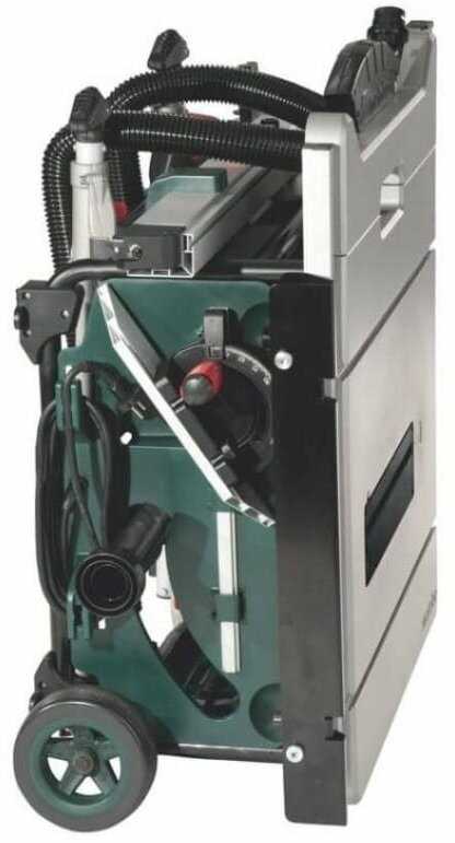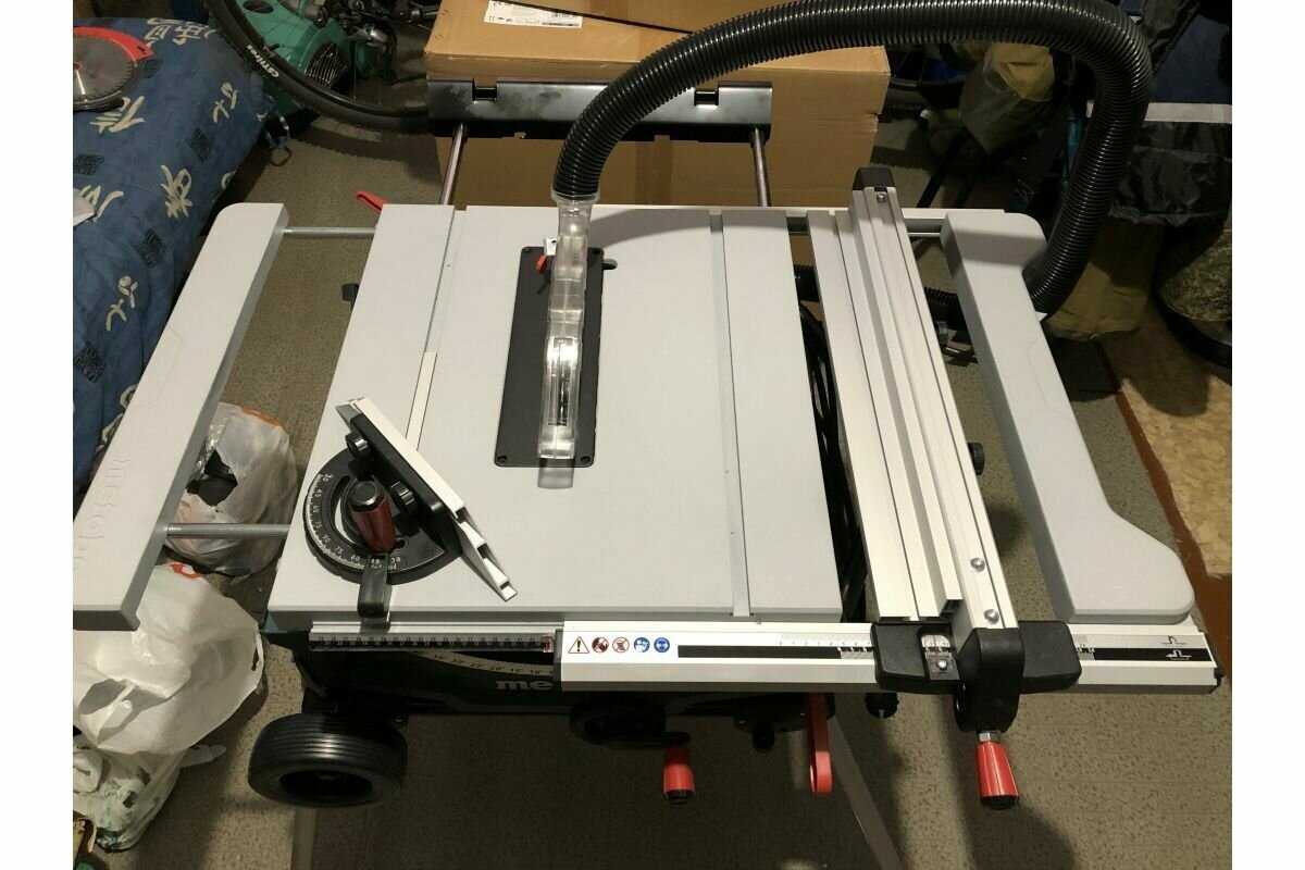 - + легкий, но не жидкий, компактно складывается, легко раскладывается. Все нужные части металлические, без люфтов, параллельный упор фиксируется легко и параллельно, расклинивающий нож из коробки отрегулирован, накладка тоже стоит правильно. Удобно сделаны все элементы, не надо ничего искать и придумывать, стружкоотсос снизу и сверху, отличное решение. есть поворачивающиеся салазки для торцевания.