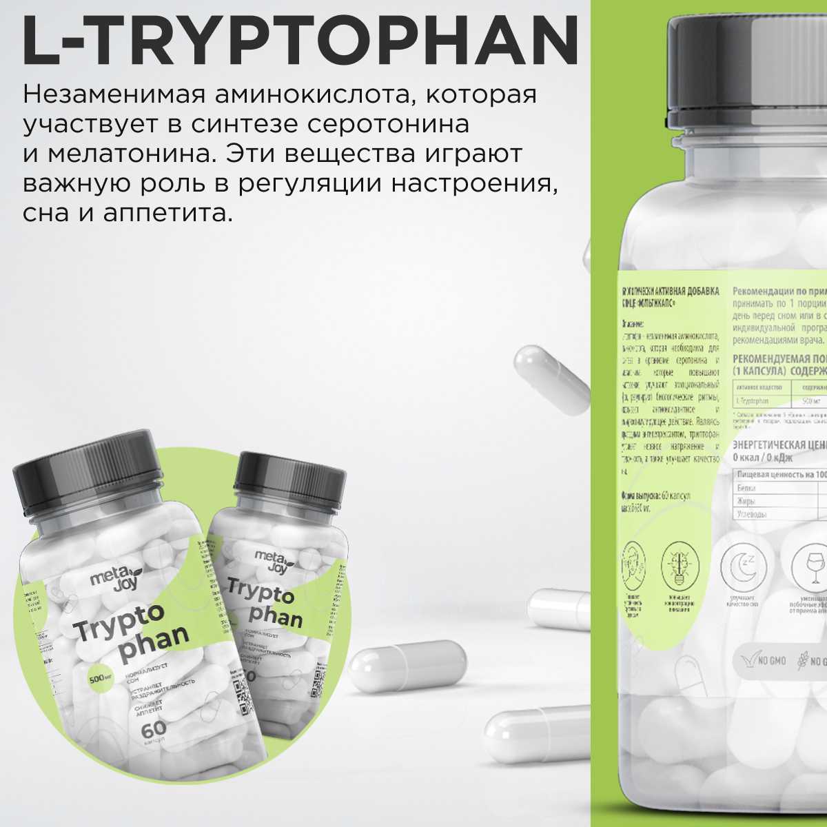 20 отзывов пользователей o metajoy Tryptophan (500mg 60caps)