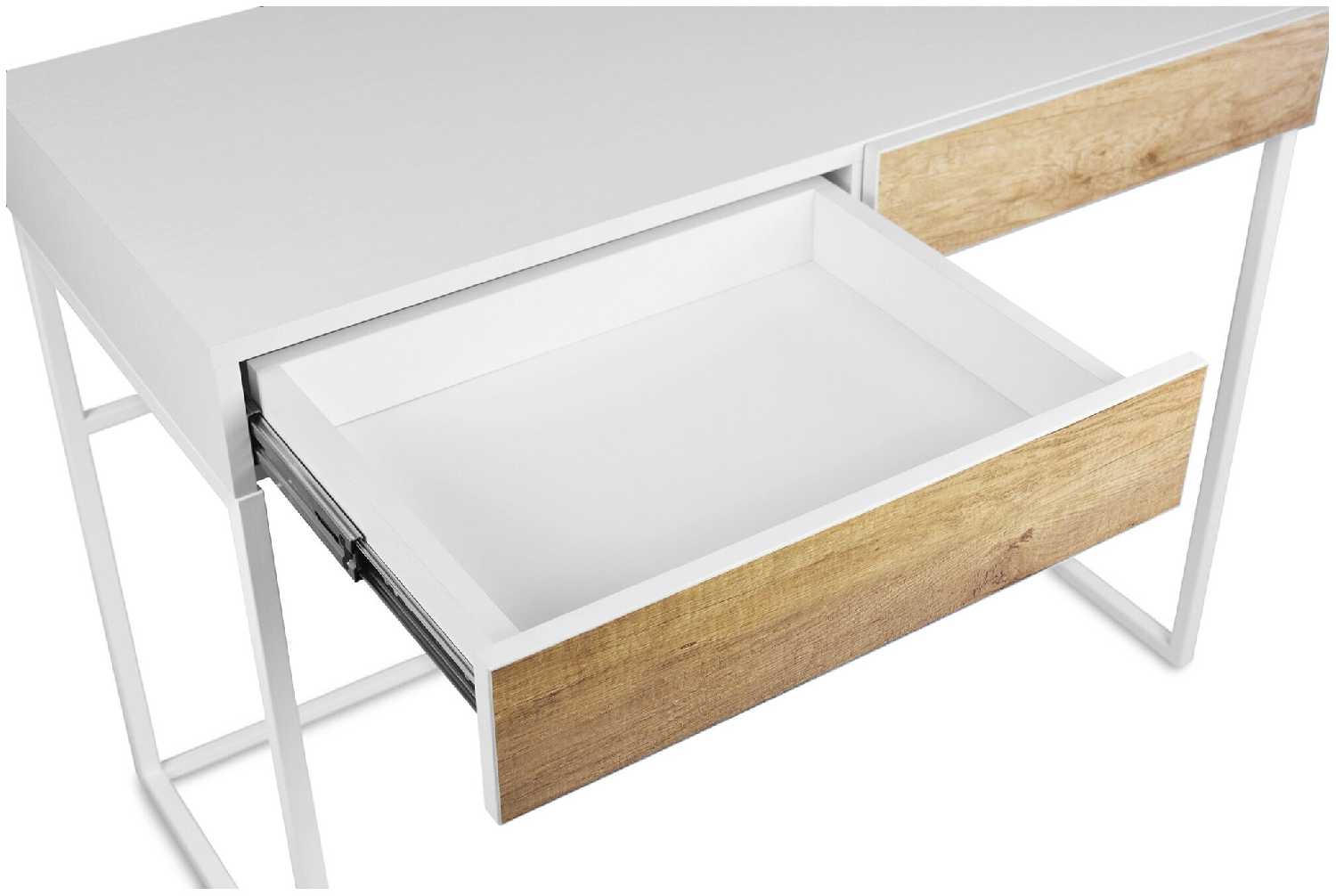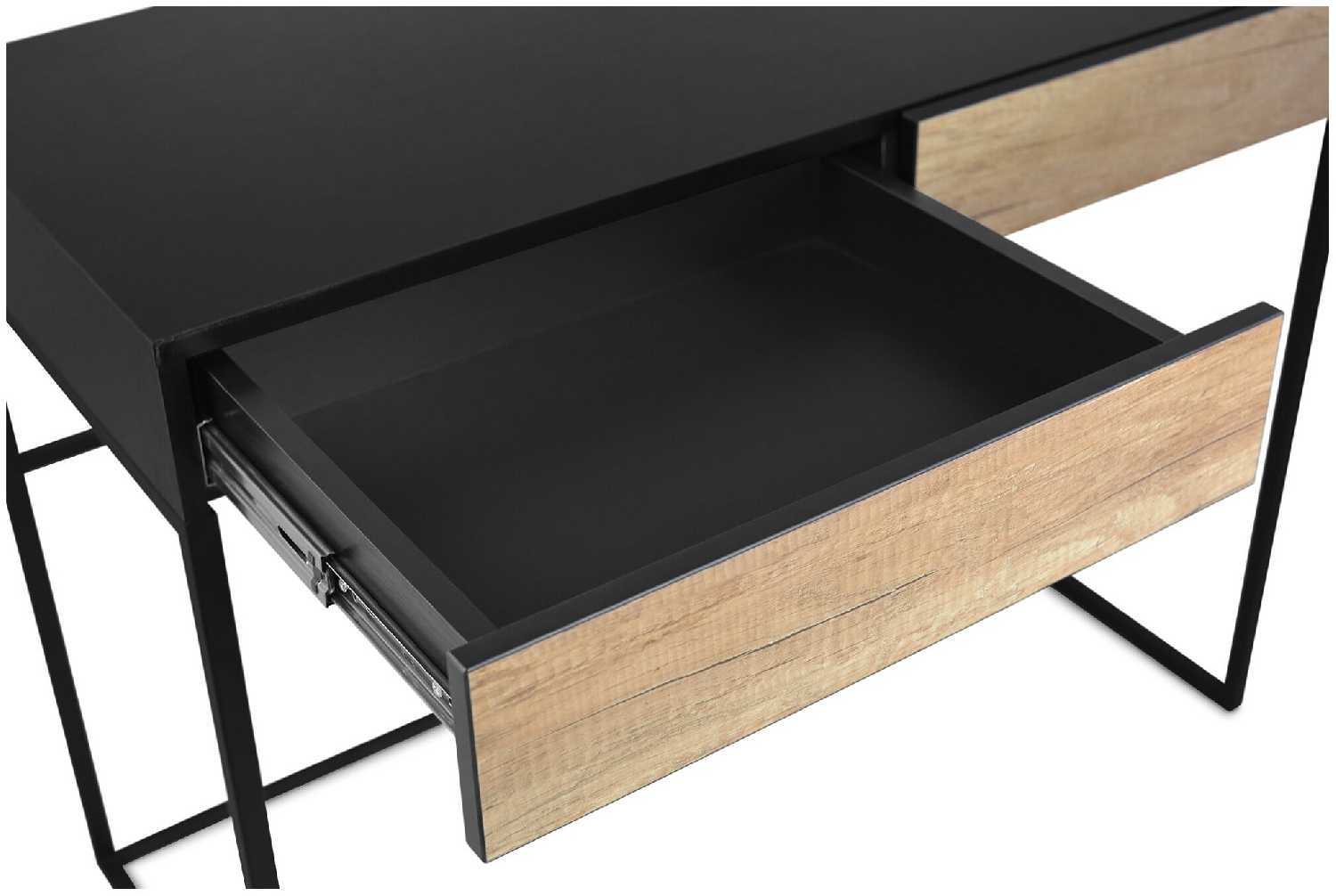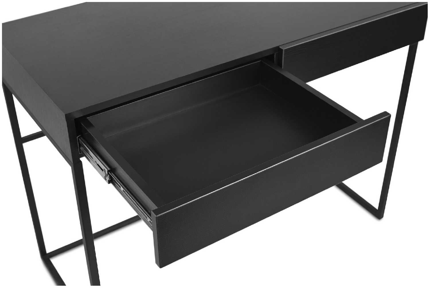 Весьма интересный стол. Ранее у нас был очень большой, но в маленькой комнате непросто было с таким развернуться - решили поменять на стол поменьше. На самом деле его хватает чтобы поработать за ноутбуком и разместить ещё несколько вещей - цветок, увлажнитель воздуха и тому подобное. В столе есть два выдвижных ящика, которые прочно держатся и очень тихо выдвигаются и закатываются обратно.