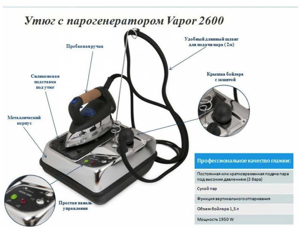 Сначала показался мне игрушечным (я работаю на швейном производстве и привыкла к утюгам потяжелее). Но при первом же использовании убедилась что для дома или небольших объёмов работ он идеален. Мощный пар, ровный, без брызг.Есть вертикальное отпаривание, удобная ручка, он компактен. Да и просто он красивый!