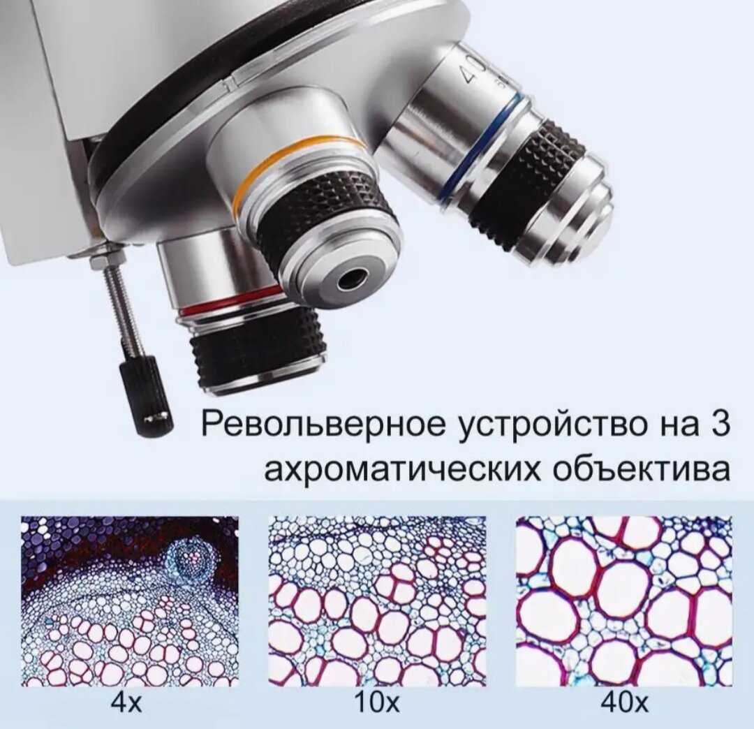 - револьверное устройство: на 3 объектива
