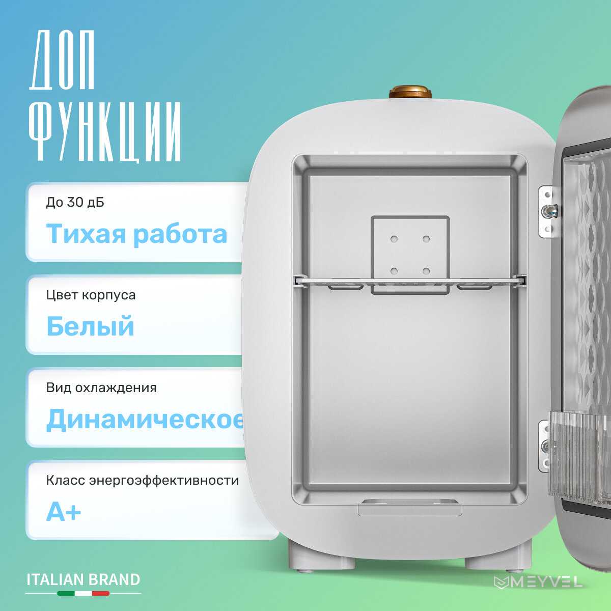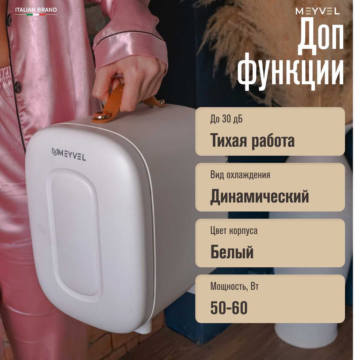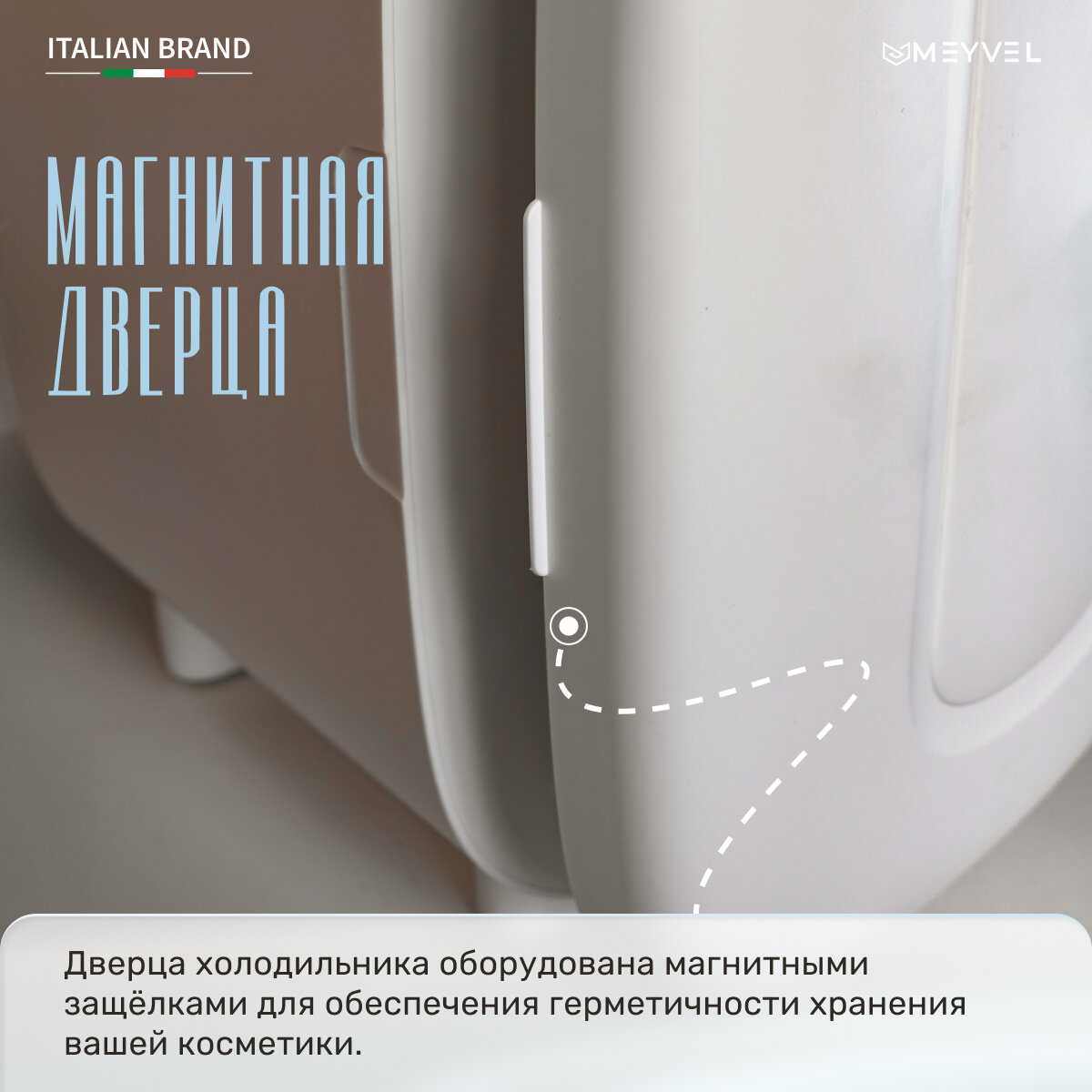 Дверца закрывается плотно и примагничивается, охлажденный воздух не выходит. Хранение стабильное. Удобна для косметики, нешумная в работе у части пользователей. -