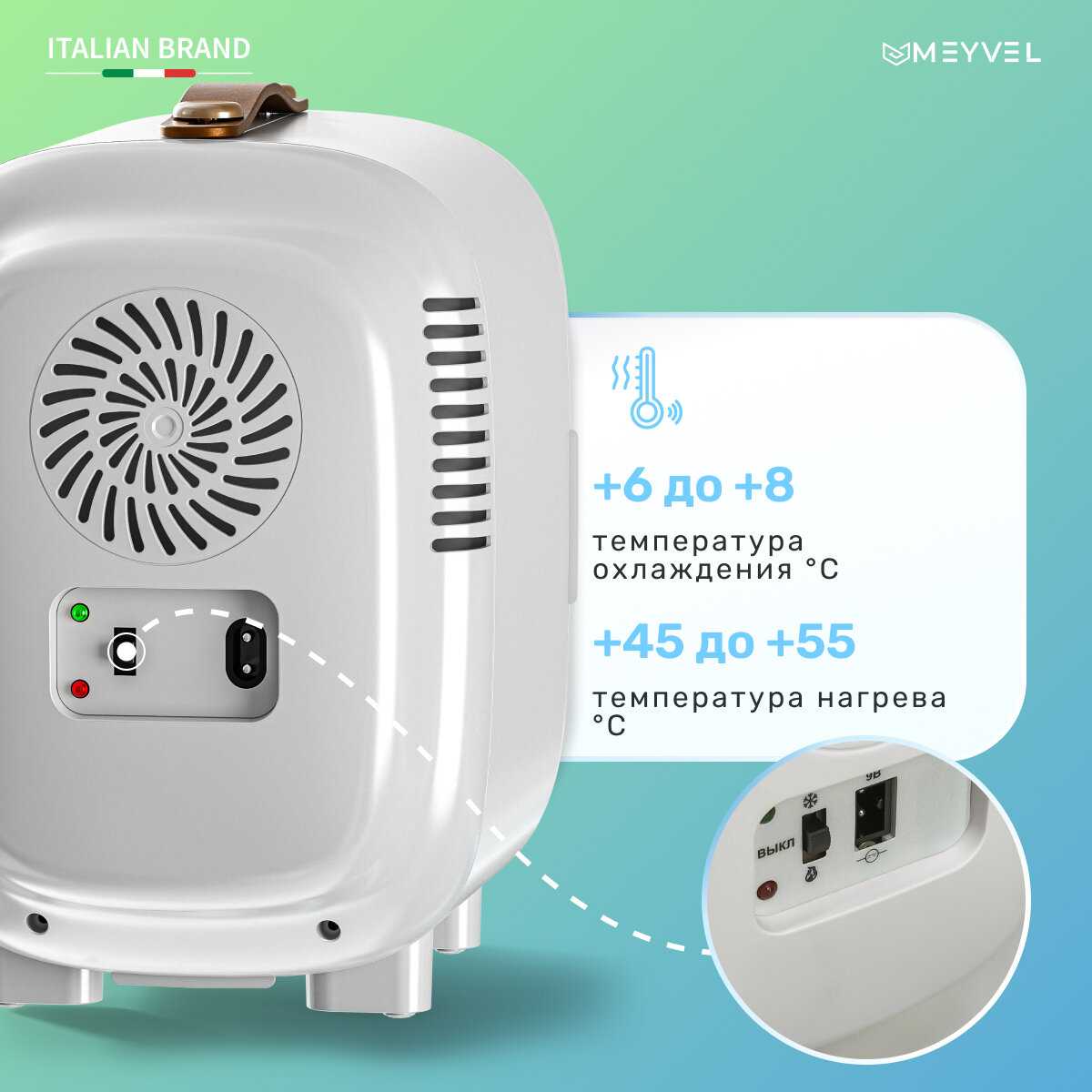 Заявленные 6-8 градусов не подтверждаются: пользователи измеряли 10-12 градусов пирометром при комнатной 24 градуса. Охлаждает стабильно, но слабо для напитков, подходит для косметики и лекарств. В жару выше 27 градусов работает хуже или не справляется. Температуру держит заданную по электронному термометру у довольных владельцев. -