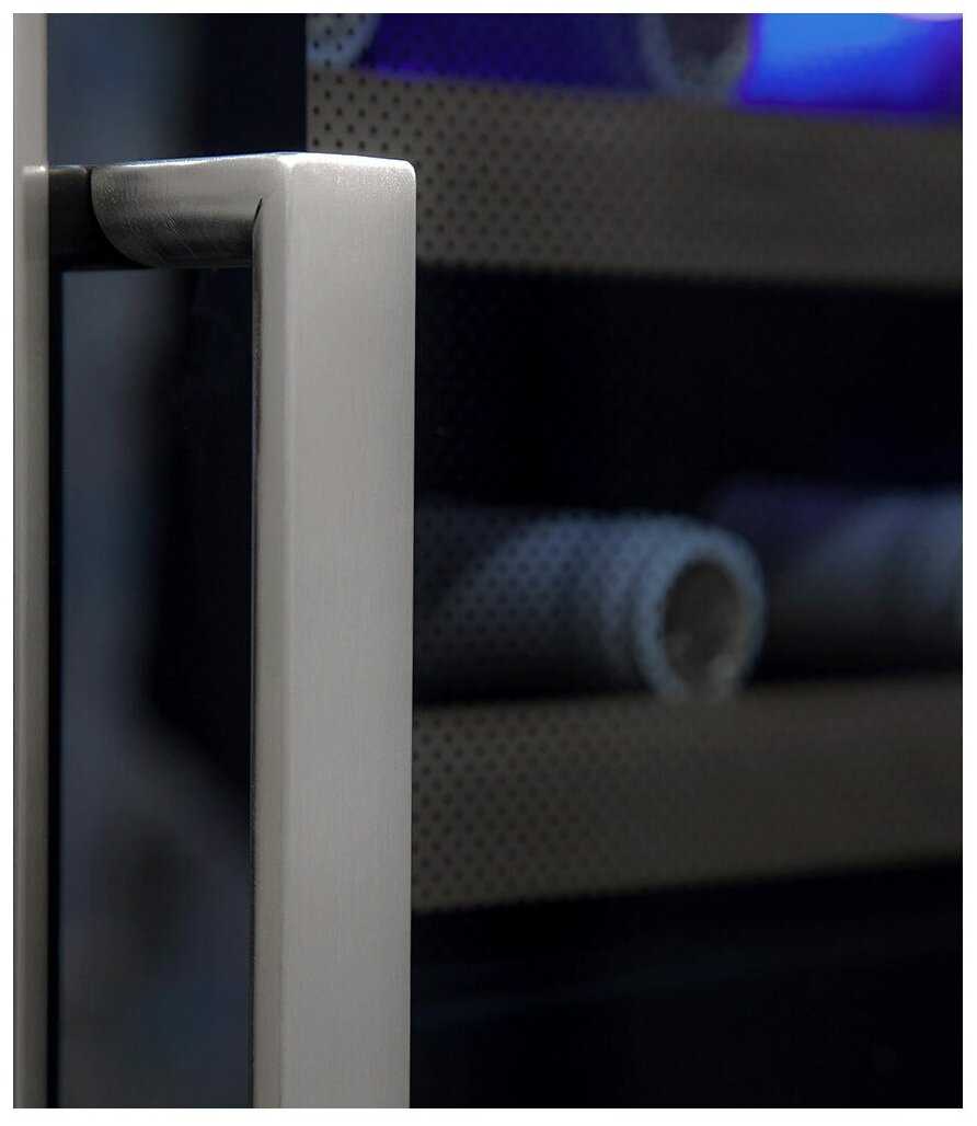 Подсветка яркая и стильная, многие первые дни любуются ею. Она подчеркивает дизайн и удобна для просмотра содержимого. Защита от ультрафиолета предотвращает порчу вина. В редких случаях подсветка отсоединена с завода. -