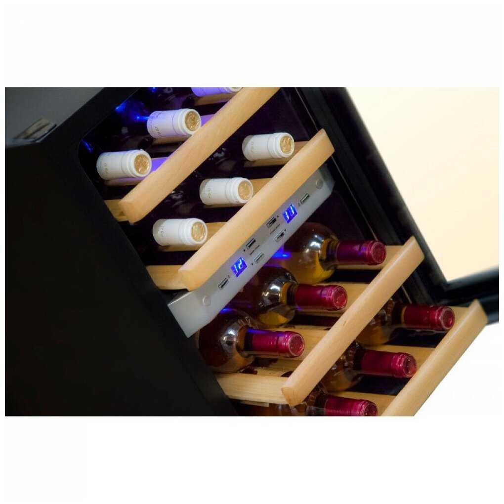 Две зоны охлаждают равномерно, позволяя хранить красное вино при 13 градусах и белое при 7, без смешивания температур. Пользователи отмечают, что после установки температура стабилизируется быстро, сохраняя вкус напитков. Однако в случае поломки верхняя зона может нагреваться, нарушая баланс. Для малого объема это работает хорошо, без перепадов внутри.