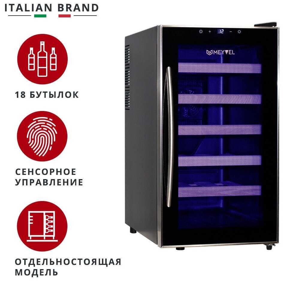 - + Объем на 18 бутылок, дизайн и внешний вид