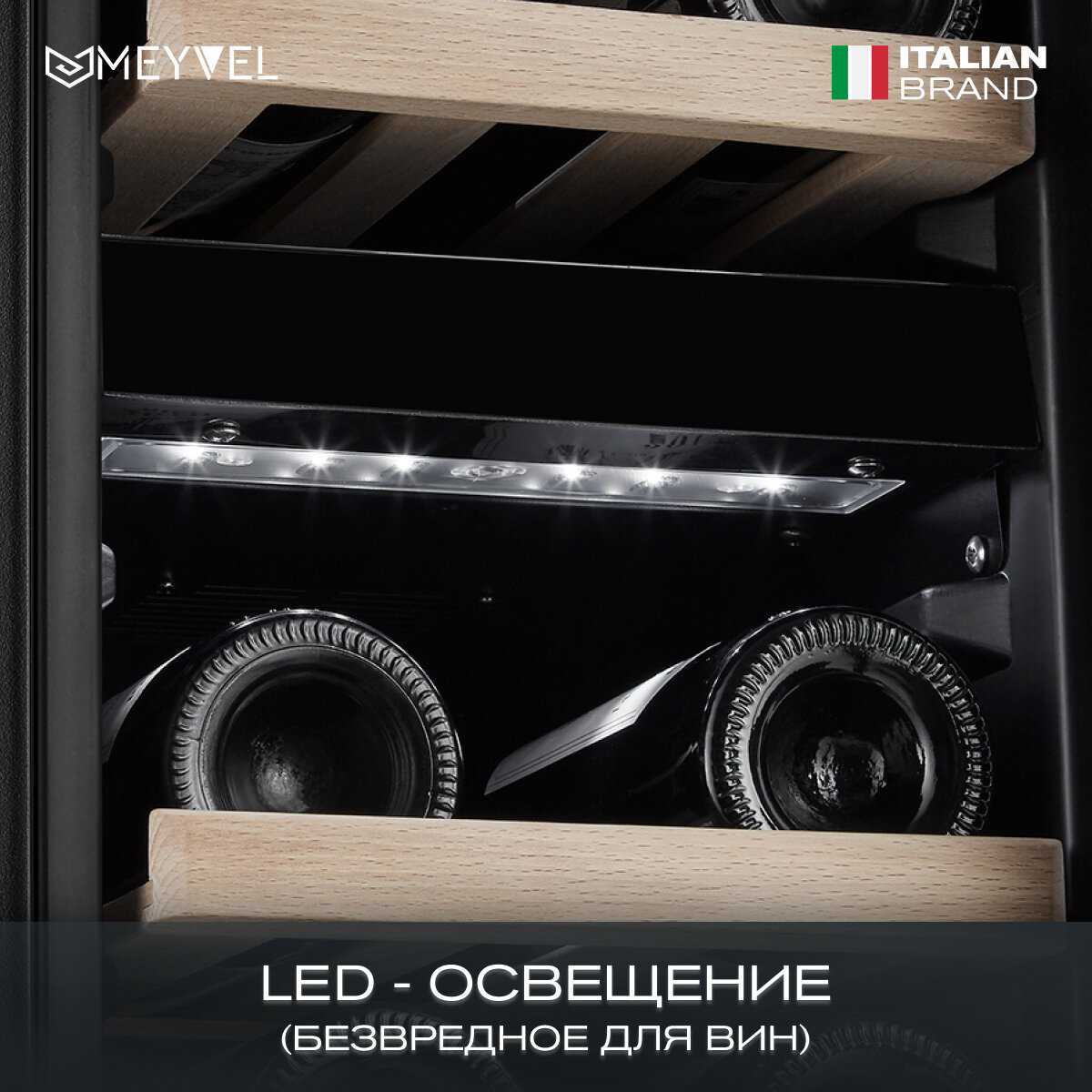 - - Шумный, громче холодильника), расстояние между полками маленькое, только для стандартных бутылок. Под шампанские вина уже приходится снимать верхнюю полку, но это не проблема.