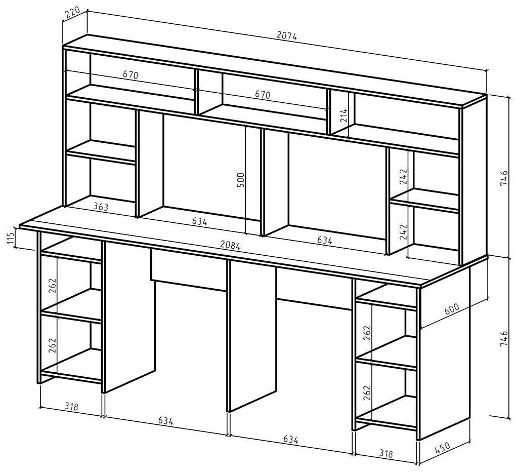 Характеристи МФ Владимир Письменный стол для двоих Лайт-12 с надстройкой