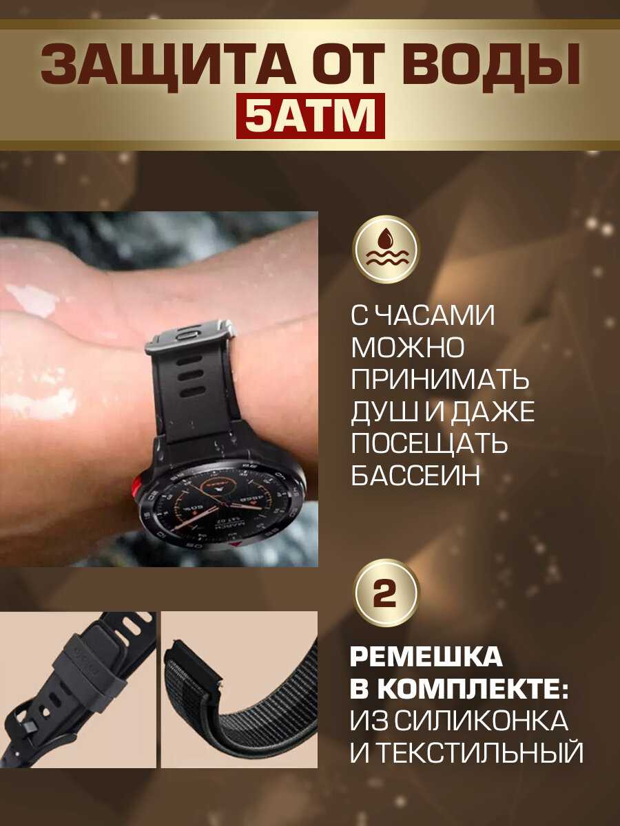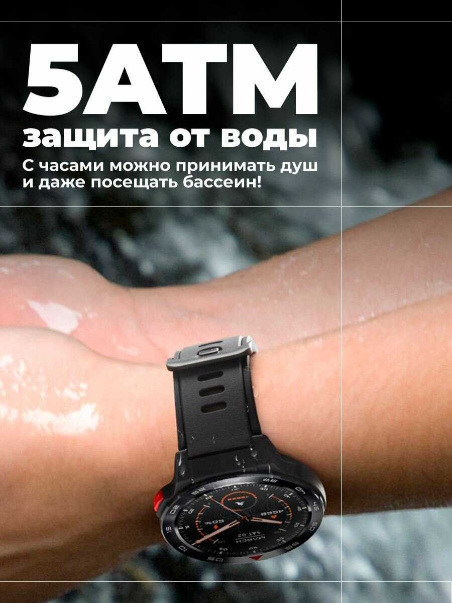 - Стандарт 5 ATM (50 метров) позволяет использовать часы в бассейне, душе, при дожде.