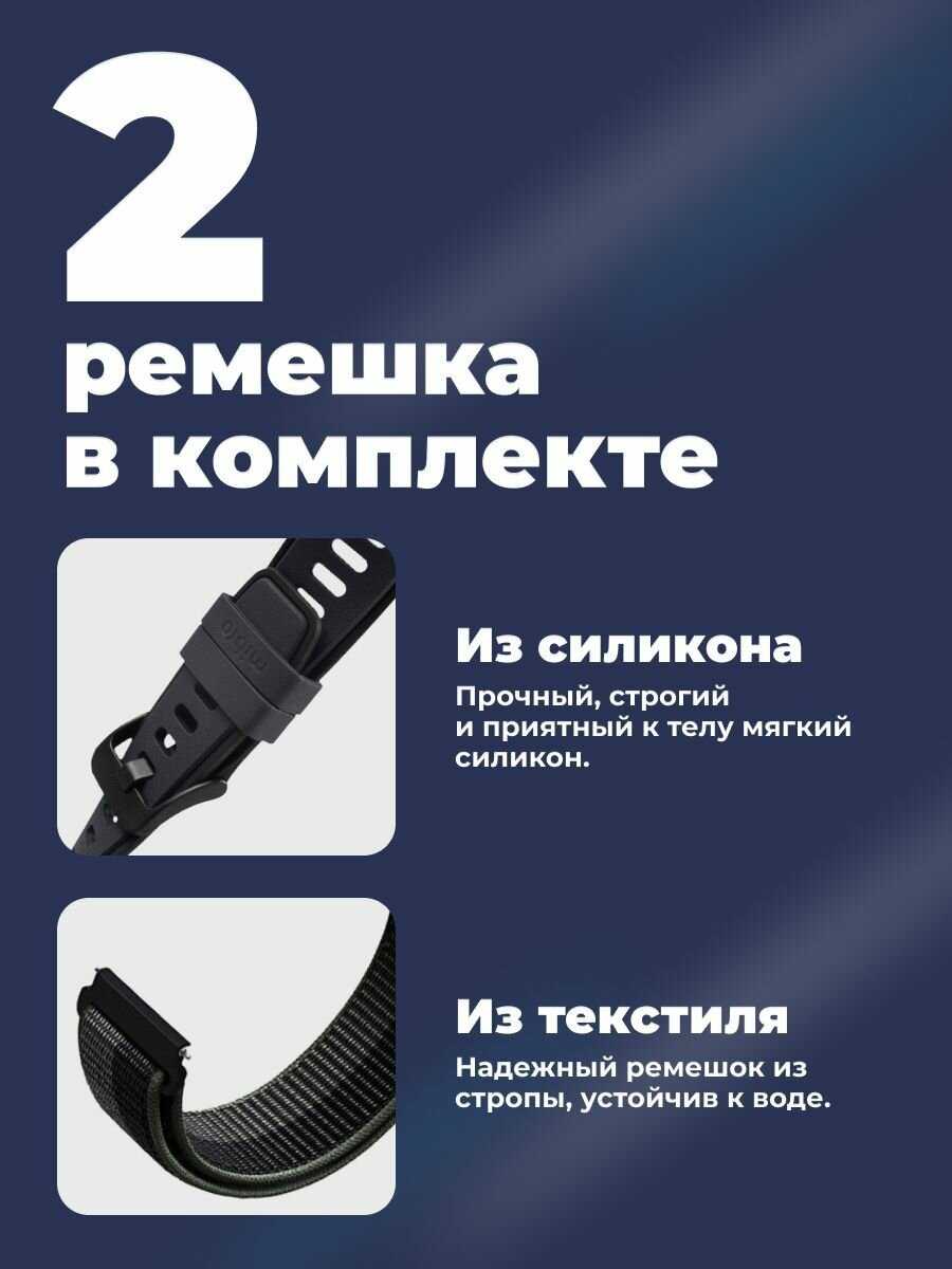 - В комплекте два ремешка: силиконовый (для спорта) и кожзам (для повседневной носки).