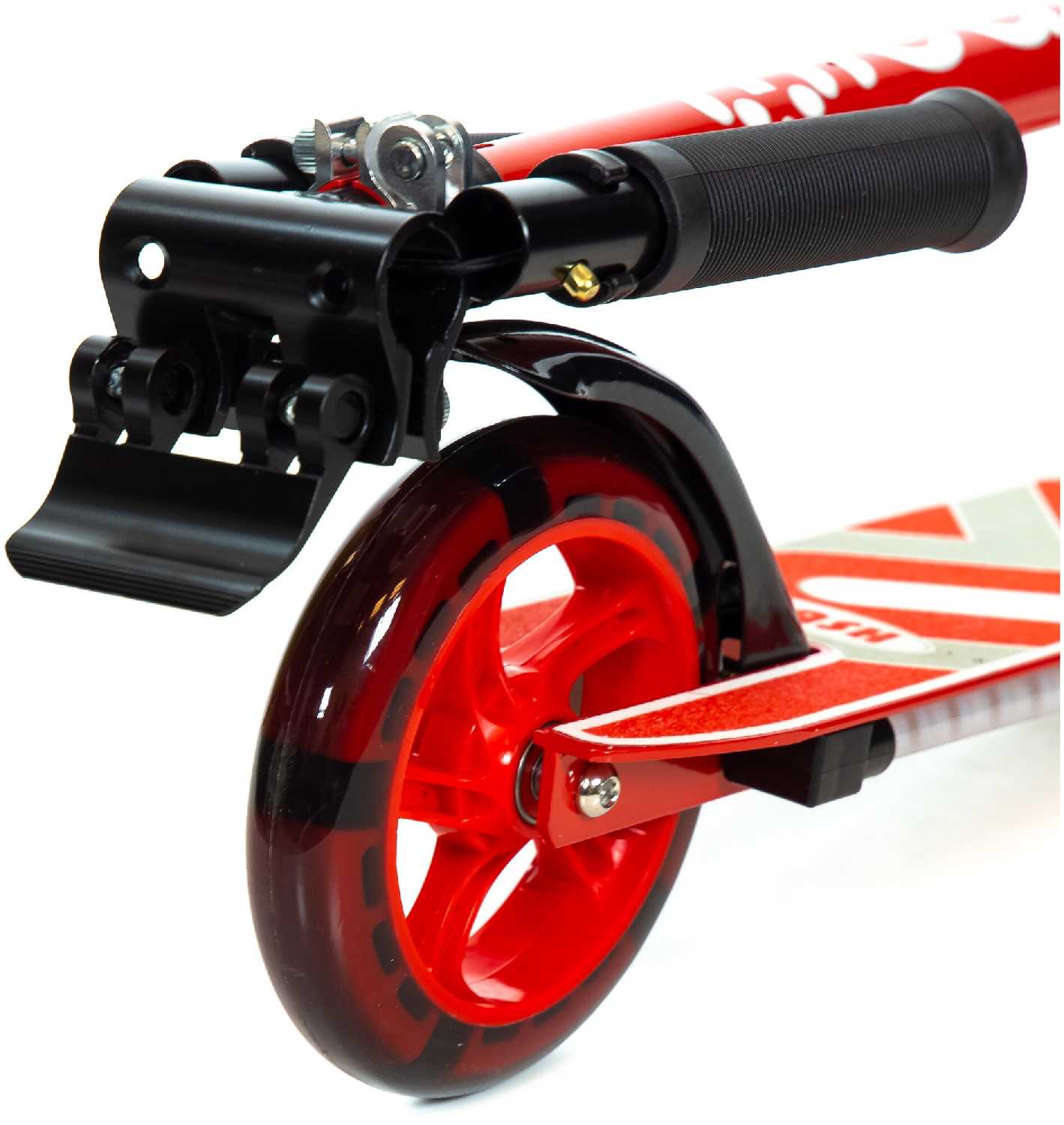 - + Отличный яркий, красивый и добротный самокат. Достаточно большой, с регулируемым по высоте рулем. На холу светятся колеса и нижняя подсветка.